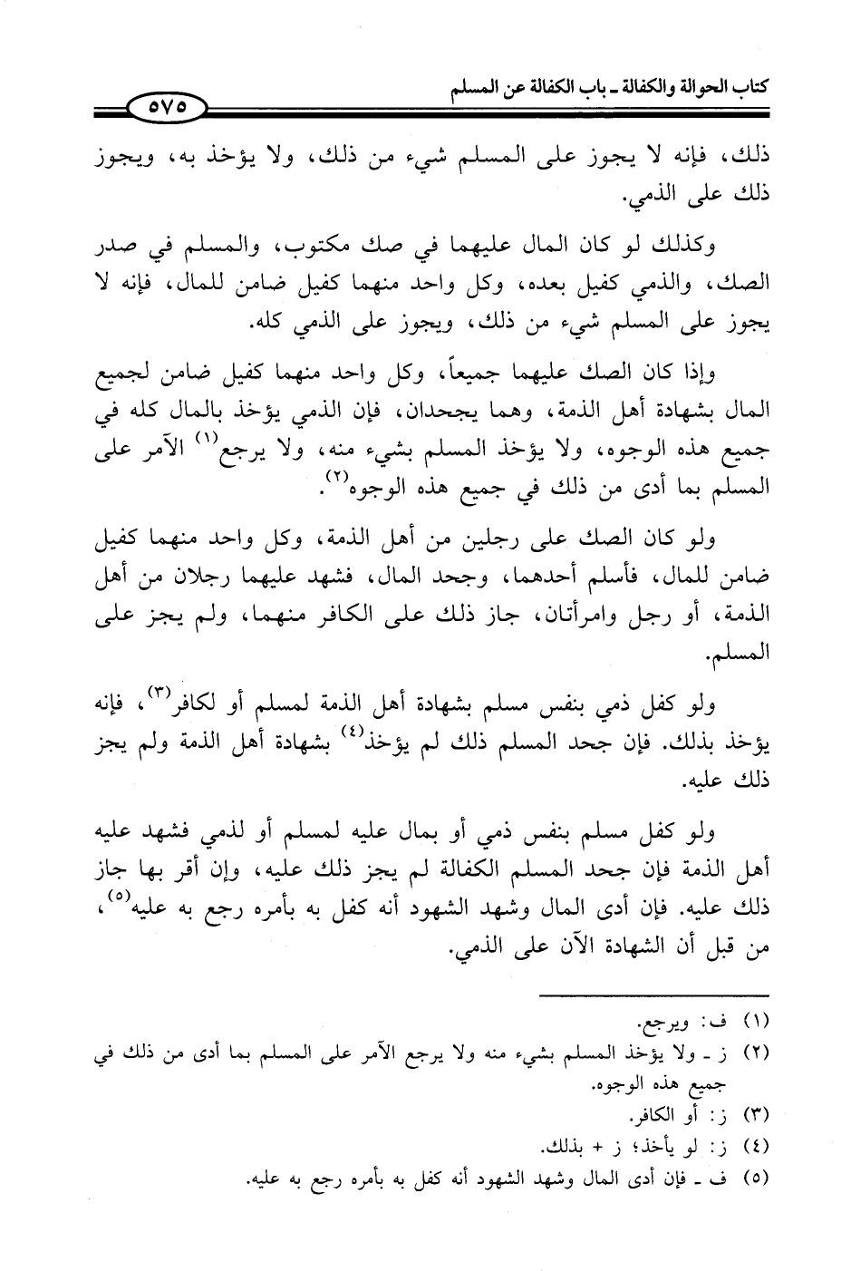(¬2) ز - ولا يؤخذ المسلم بشيء منه ولا يرجع الآمر على المسلم بما أدى من ذلك في جميع هذه الوجوه.