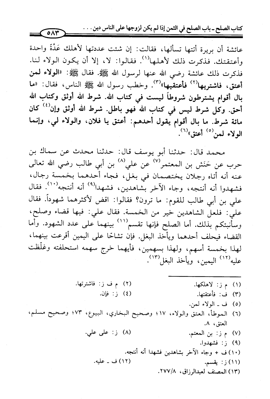 (¬6) الموطأ، العتق والولاء، 17؛ وصحيح البخاري، البيوع، 73؛ وصحيح مسلم، العتق، 8.
