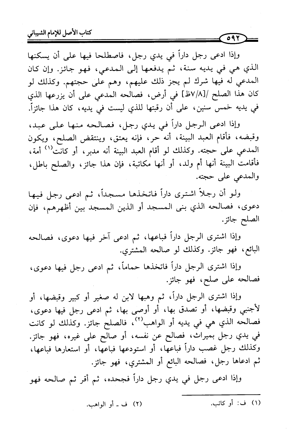 ولو أن رجلاً اشترى داراً فاتخذها مسجداً، ثم ادعى رجل فيها دعوى، فصالحه الذي بنى المسجد أو الذين المسجد بين أظهرهم، فإن الصلح جائز.