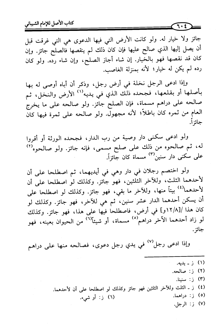 ولو اختصم رجلان في دار وهي في أيديهما، ثم اصطلحا على أن لأحدهما الثلث، وللآخر الثلثين، فهو جائز. وكذلك لو اصطلحا على أن لأحدهما (¬4) بيتاً منها، وللآخر ما بقي، فهو جائز. وكذلك لو اصطلحا على أن يسكن أحدهما الدار عشر سنين، ثم هي للآخر، فهو جائز. وكذلك لو كان هذا في أرض، فاصطلحا فيها على هذا، فهو جائز. وكذلك لو زاد أحدهما الآخر دراهم (¬5) مسماة، أو شيئاً (¬6) من الحيوان بعينه، فهو جائز.