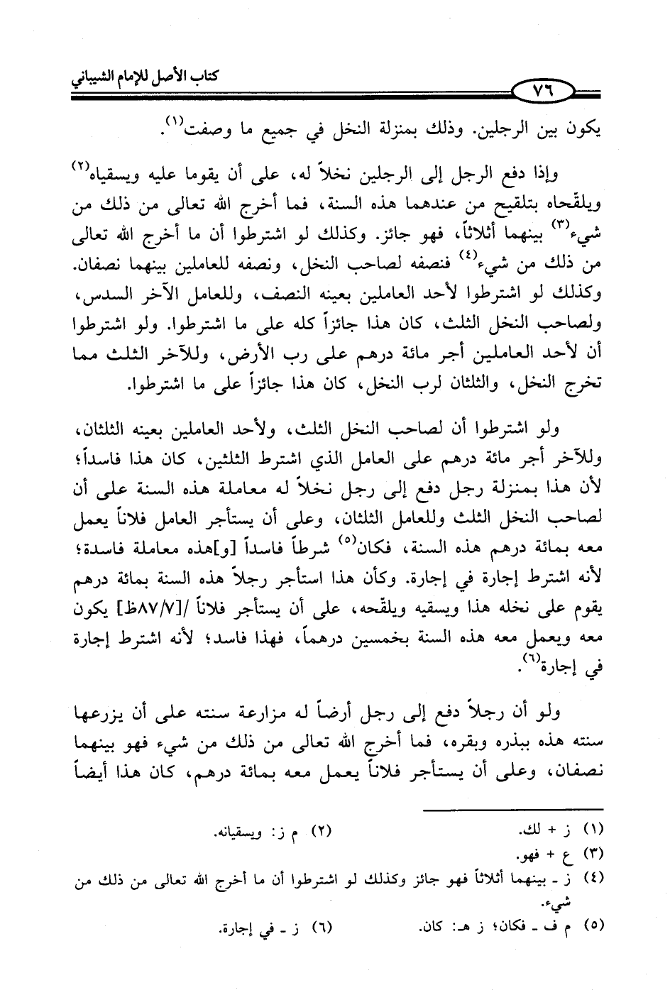 (¬4) ز - بينهما أثلاثاً فهو جائز وكذلك لو اشترطوا أن ما أخرج الله تعالى من ذلك من شيء.