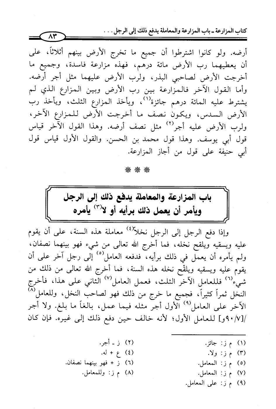 باب المزارعة والمعاملة يدفع ذلك إلى الرجل ويأمر أن يعمل ذلك برأيه أو لا (¬3) يأمره