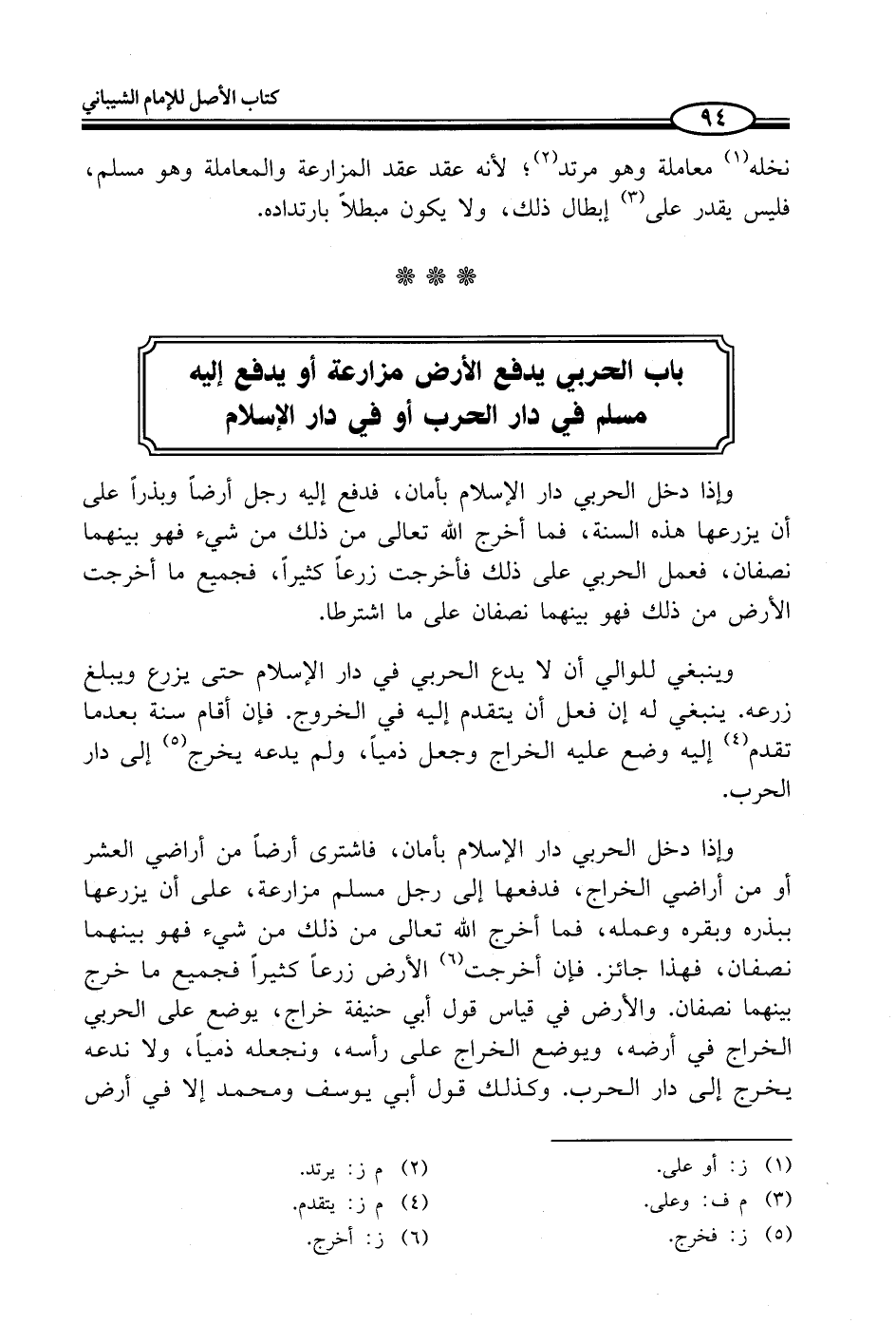 باب الحربي يدفع الأرض مزارعة أو يدفع إليه مسلم في دار الحرب أو في دار الإسلام
