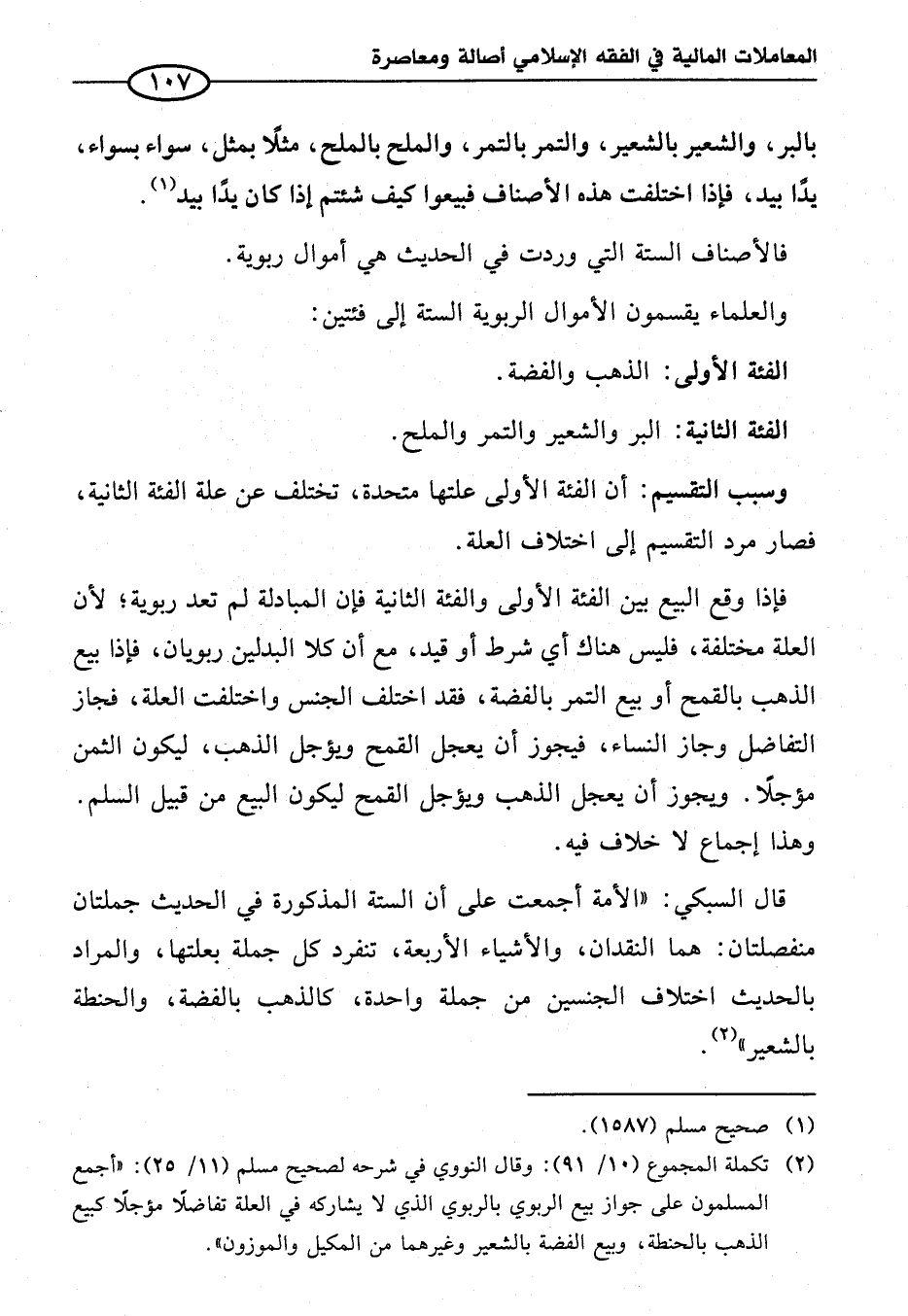 (¬٢) تكملة المجموع (١٠/ ٩١): وقال النووي في شرحه لصحيح مسلم (١١/ ٢٥): "أجمع المسلمون على جواز بيع الربوي بالربوي الذي لا يشاركه في العلة تفاضلًا مؤجلًا كبيع الذهب بالحنطة، وبيع الفضة بالشعير وغيرهما من المكيل والموزون".