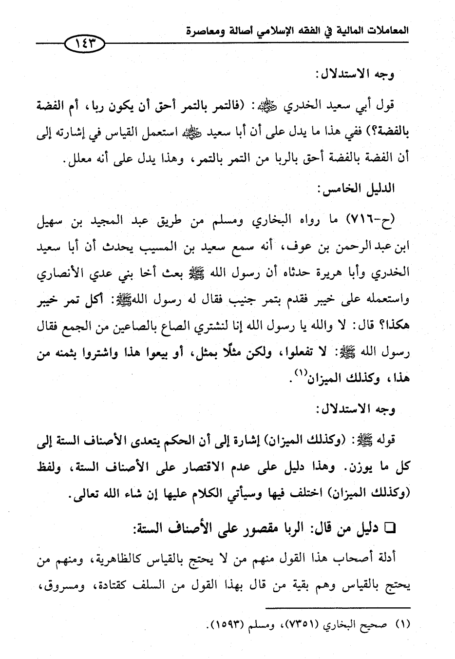 دليل من قال: الربا مقصور على الأصناف الستة: