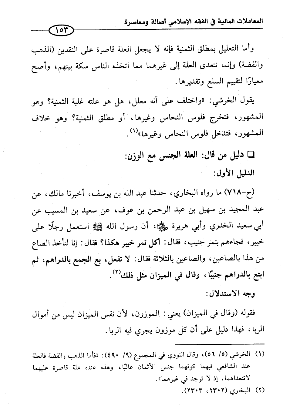 (¬١) الخرشي (٥/ ٥٦)، وقال النووي في المجموع (٩/ ٤٩٠): "فأما الذهب والفضة فالعلة عند الشافعي فيهما كونهما جنس الأثمان غالبًا، وهذه عنده علة قاصرة عليهما لا تتعداهما، إذ لا توجد في غيرهما".