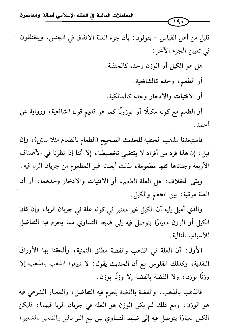 فاستبعدنا مذهب الحنفية للحديث الصحيح (الطعام بالطعام مثلا بمثل)، وإن قيل: إن هذا فرد من أفراد لا يقتضي تخصيصًا، إلا أننا إذا نظرنا في الأصناف الأربعة وجدناها كلها مطعومة، لذلك أبعدنا غير المطعوم من جريان الربا فيه.