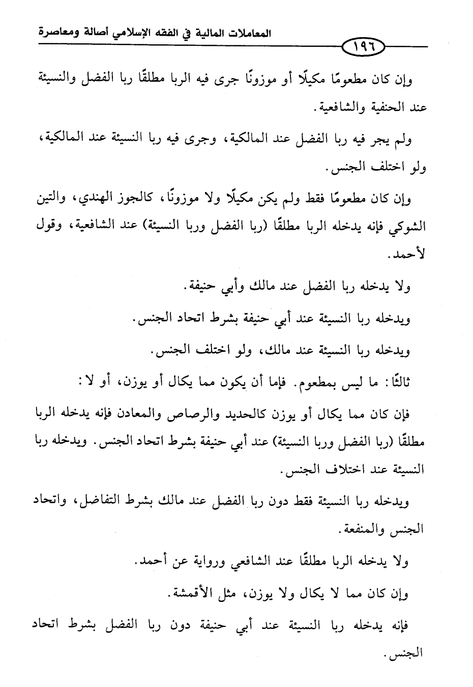 وإن كان مطعومًا مكيلًا أو موزونًا جرى فيه الربا مطلقًا ربا الفضل والنسيئة عند الحنفية والشافعية.