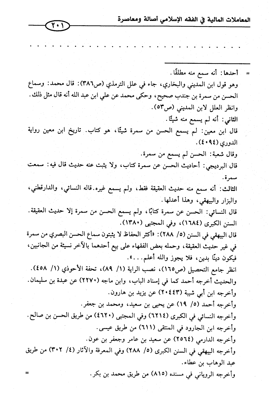 قال البيهقي في السنن (٥/ ٢٨٨): "أكثر الحفاظ لا يثبتون سماع الحسن البصري من سمرة في غير حديث العقيقة، وحمله بعض الفقهاء على بيع أحدهما بالآخر نسيئة من الجانبين، فيكون دينًا بدين، فلا يجوز والله أعلم ... ".