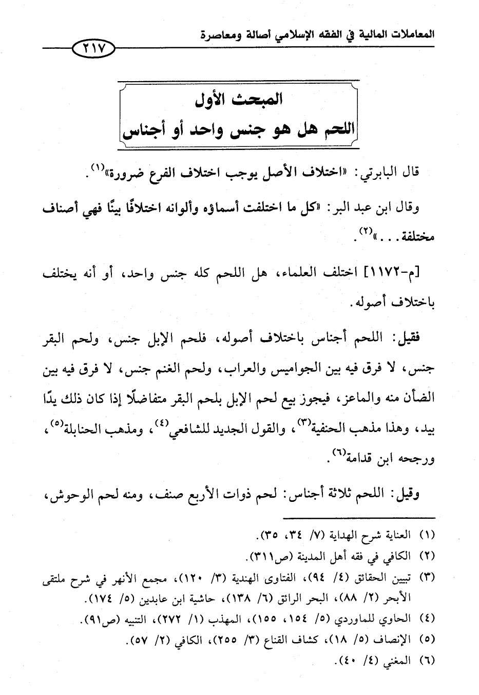 المبحث الأول اللحم هل هو جنس واحد أو أجناس