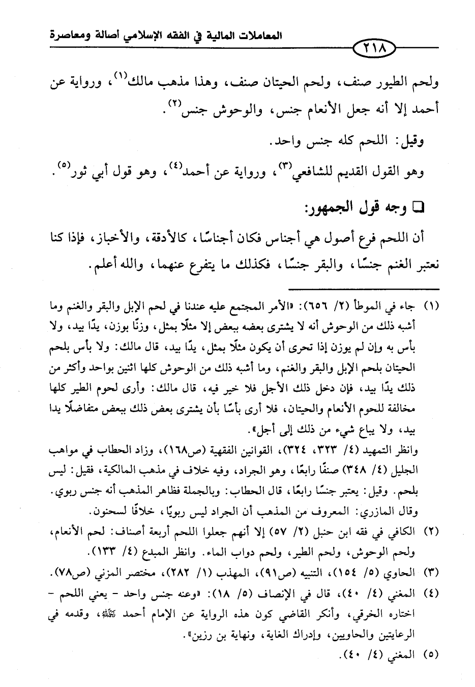 (¬٤) المغني (٤/ ٤٠)، قال في الإنصاف (٥/ ١٨): "وعنه جنس واحد -يعني اللحم- اختاره الخرقي، وأنكر القاضي كون هذه الرواية عن الإِمام أحمد رحمه الله، وقدمه في الرعايتين والحاويين، وإدراك الغاية، ونهاية بن رزين".