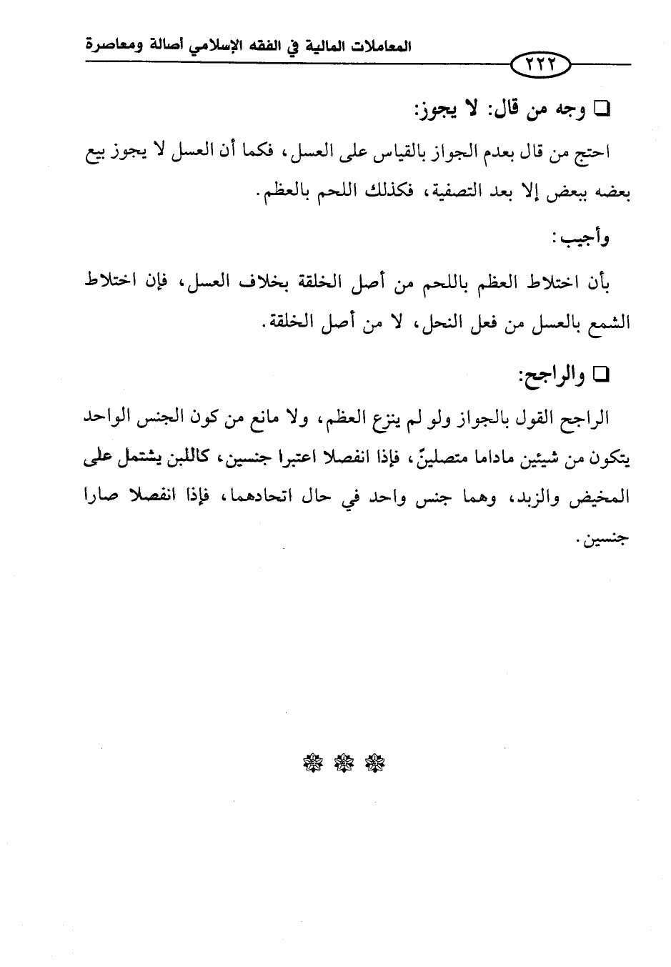 احتج من قال بعدم الجواز بالقياس على العسل، فكما أن العسل لا يجوز بيع بعضه ببعض إلا بعد التصفية، فكذلك اللحم بالعظم.