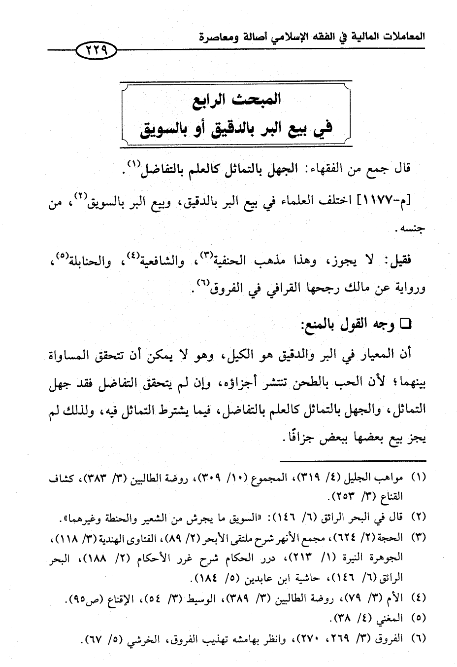 المبحث الرابع في بيع البر بالدقيق أو بالسويق