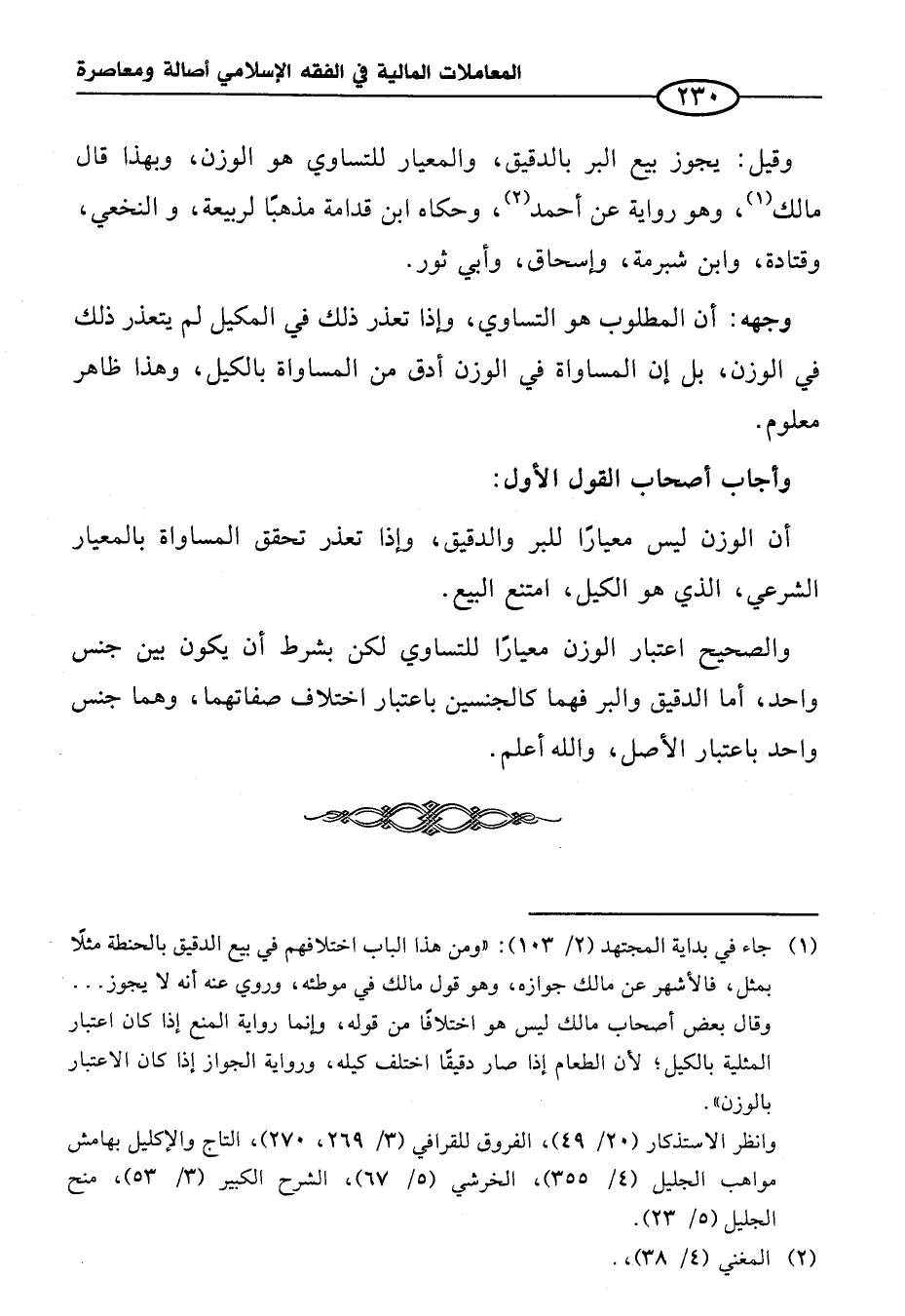 (¬١) جاء في بداية المجتهد (٢/ ١٠٣): "ومن هذا الباب اختلافهم في بيع الدقيق بالحنطة مثلًا بمثل، فالأشهر عن مالك جوازه، وهو قول مالك في موطئه، وروي عنه أنه لا يجوز ... وقال بعض أصحاب مالك ليس هو اختلافاً من قوله، وإنما رواية المنع إذا كان اعتبار المثلية بالكيل؛ لأن الطعام إذا صار دقيقًا اختلف كيله، ورواية الجواز إذا كان الاعتبار بالوزن".
