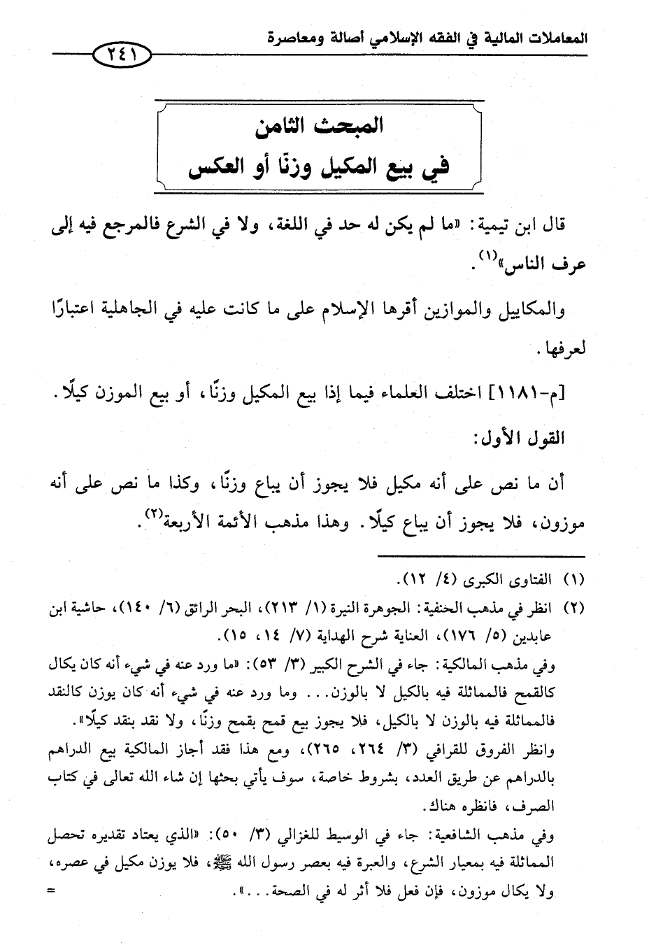 المبحث الثامن في بيع المكيل وزنًا أو العكس