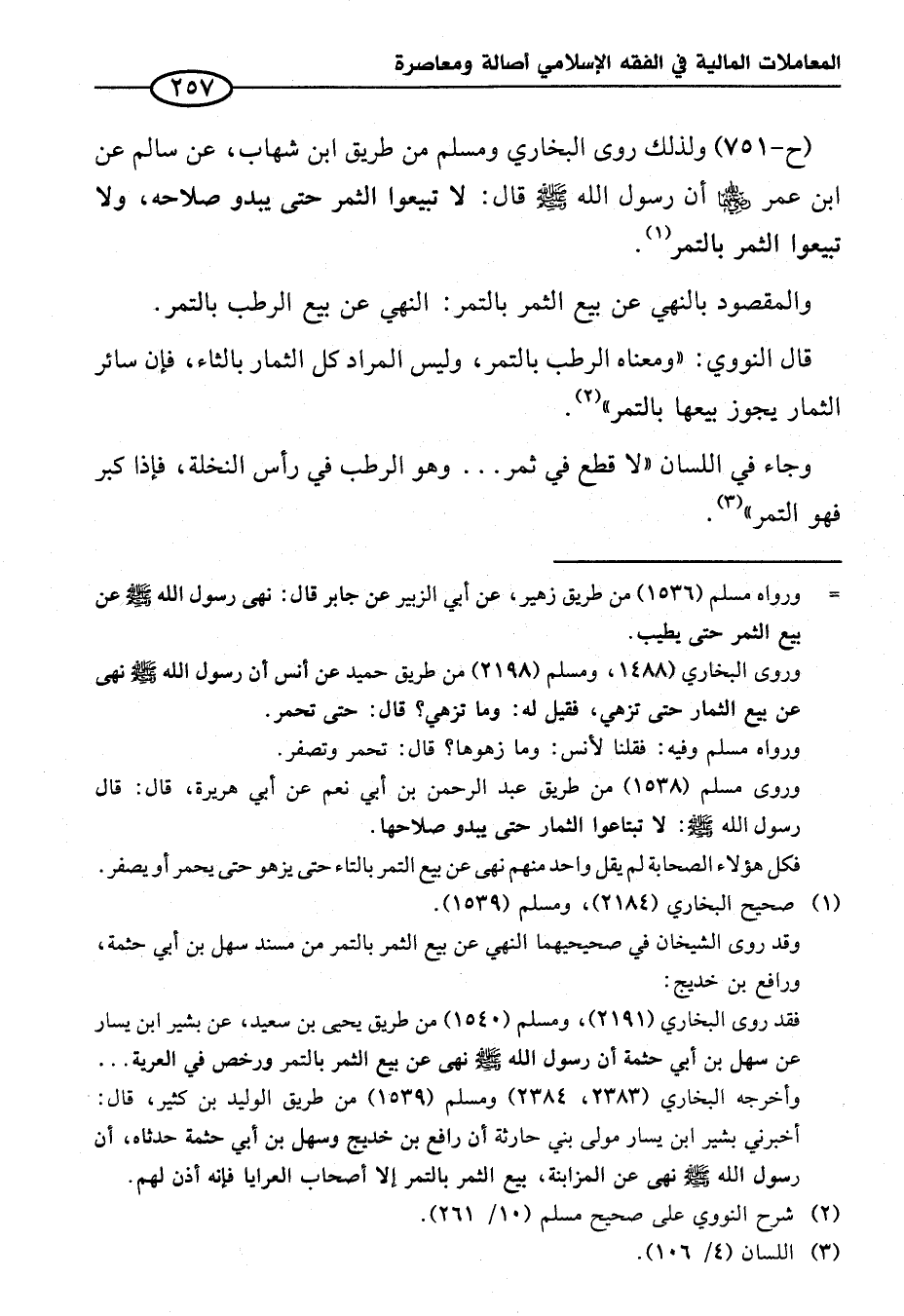 (ح-٧٥١) ولذلك روى البخاري ومسلم من طريق ابن شهاب، عن سالم عن ابن عمر - رضي الله عنهما - أن رسول الله - صلى الله عليه وسلم - قال: لا تبيعوا الثمر حتى يبدو صلاحه، ولا تبيعوا الثمر بالتمر (¬١).