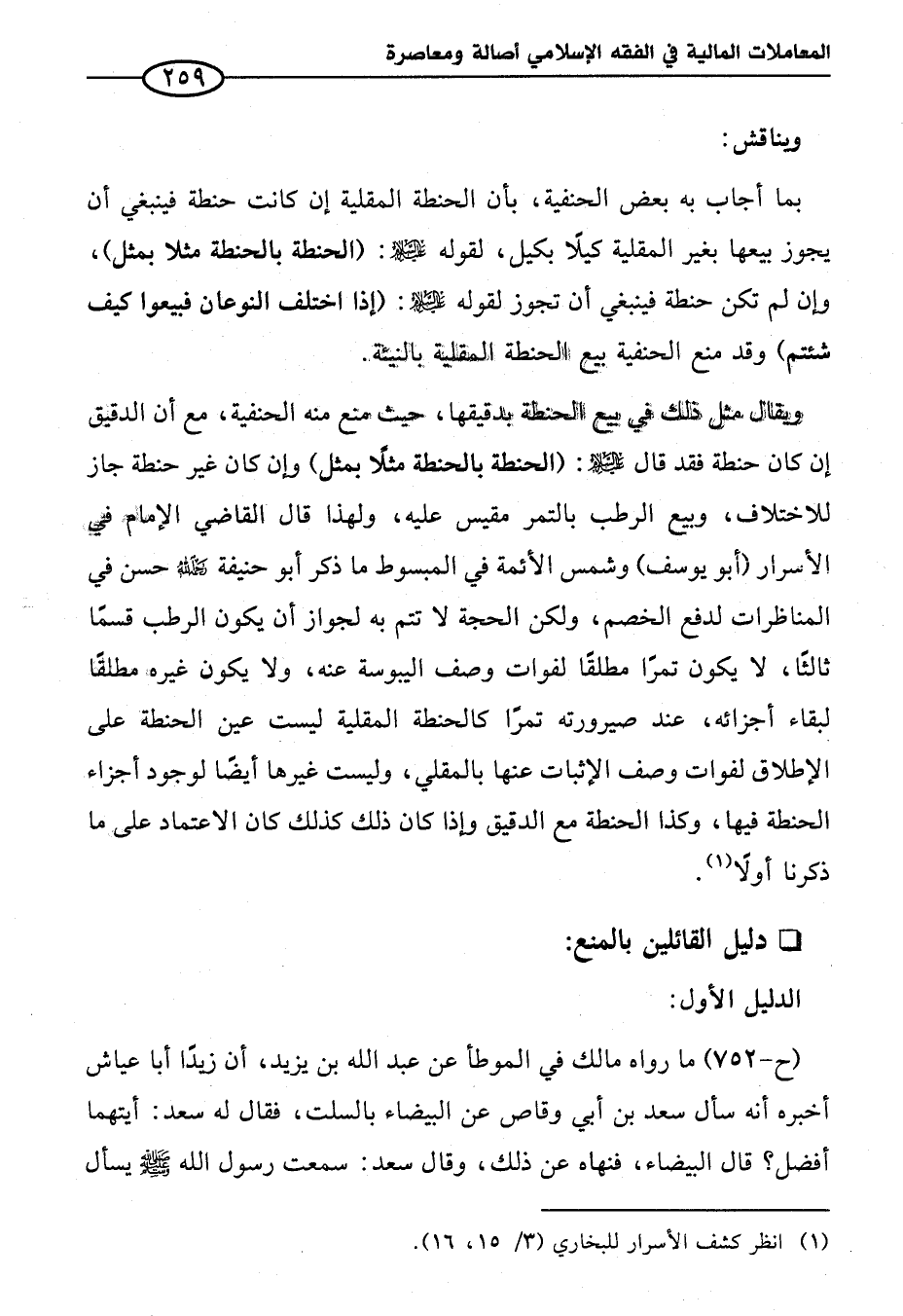 (ح-٧٥٢) ما رواه مالك في الموطأ عن عبد الله بن يزيد، أن زيداً أبا عياش أخبره أنه سأل سعد بن أبي وقاص عن البيضاء بالسلت، فقال له سعد: أيتهما أفضل؟ قال البيضاء، فنهاه عن ذلك، وقال سعد: سمعت رسول الله - صلى الله عليه وسلم - يسأل