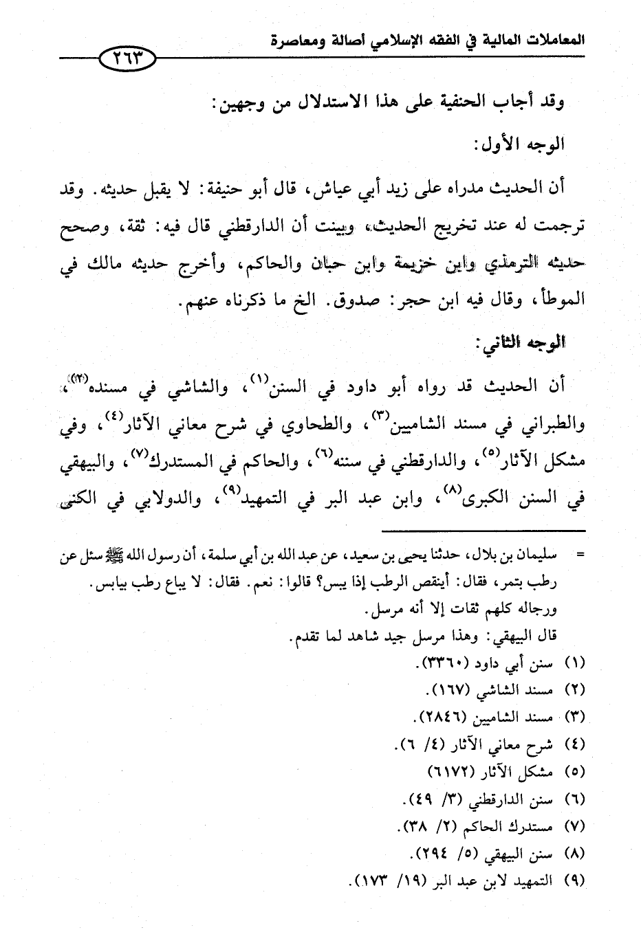 أن الحديث مدراه على زيد أبي عياش، قال أبو حنيفة: لا يقبل حديثه. وقد ترجمت له عند تخريج الحديث, وبينت أن الدارقطني قال في: ثقة، وصحح حديثه الترمذي وابن خزيمه وابن حبان والحاكم، وأخرج حديثه مالك في الموطأ، وقال في ابن حجر: صدوق. الخ ما ذكرناه عنهم.