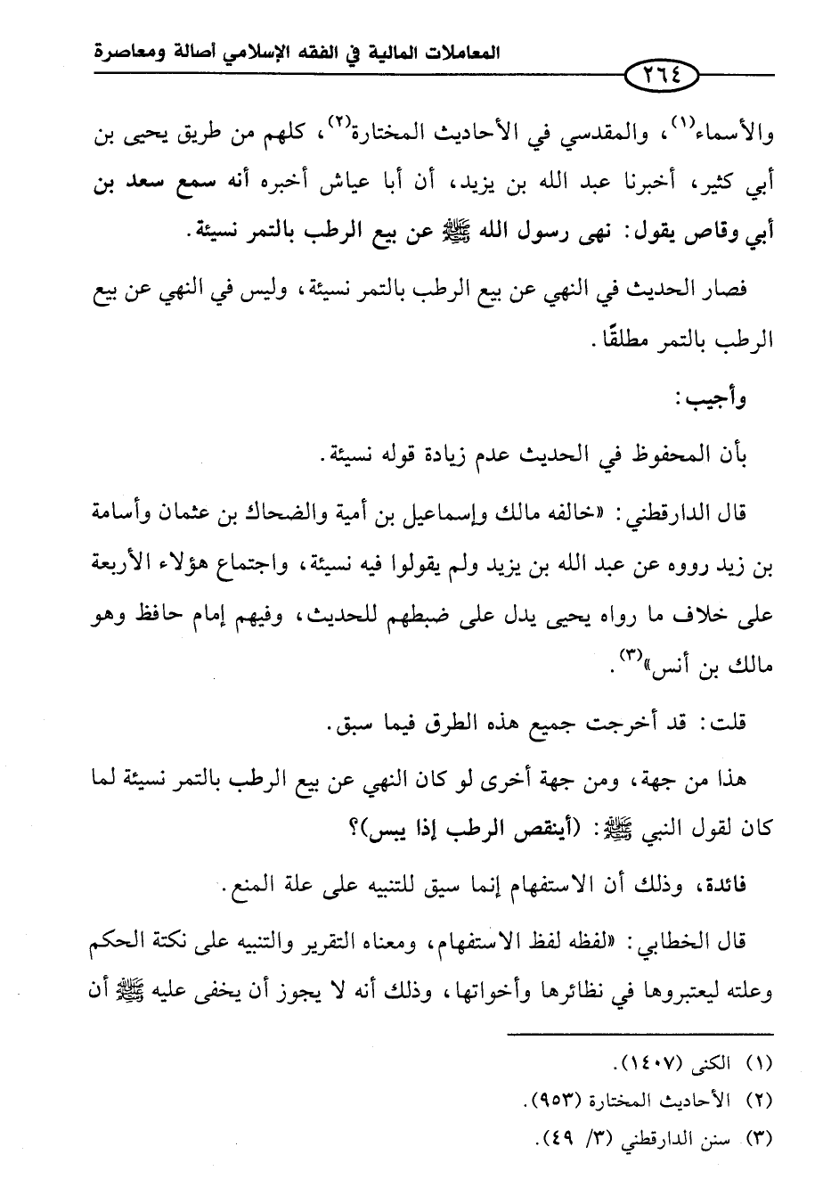 هذا من جهة، ومن جهة أخرى لو كان النهي عن بيع الرطب بالتمر نسيئة لما كان لقول النبي - صلى الله عليه وسلم -: (أينقص الرطب إذا يبس)؟