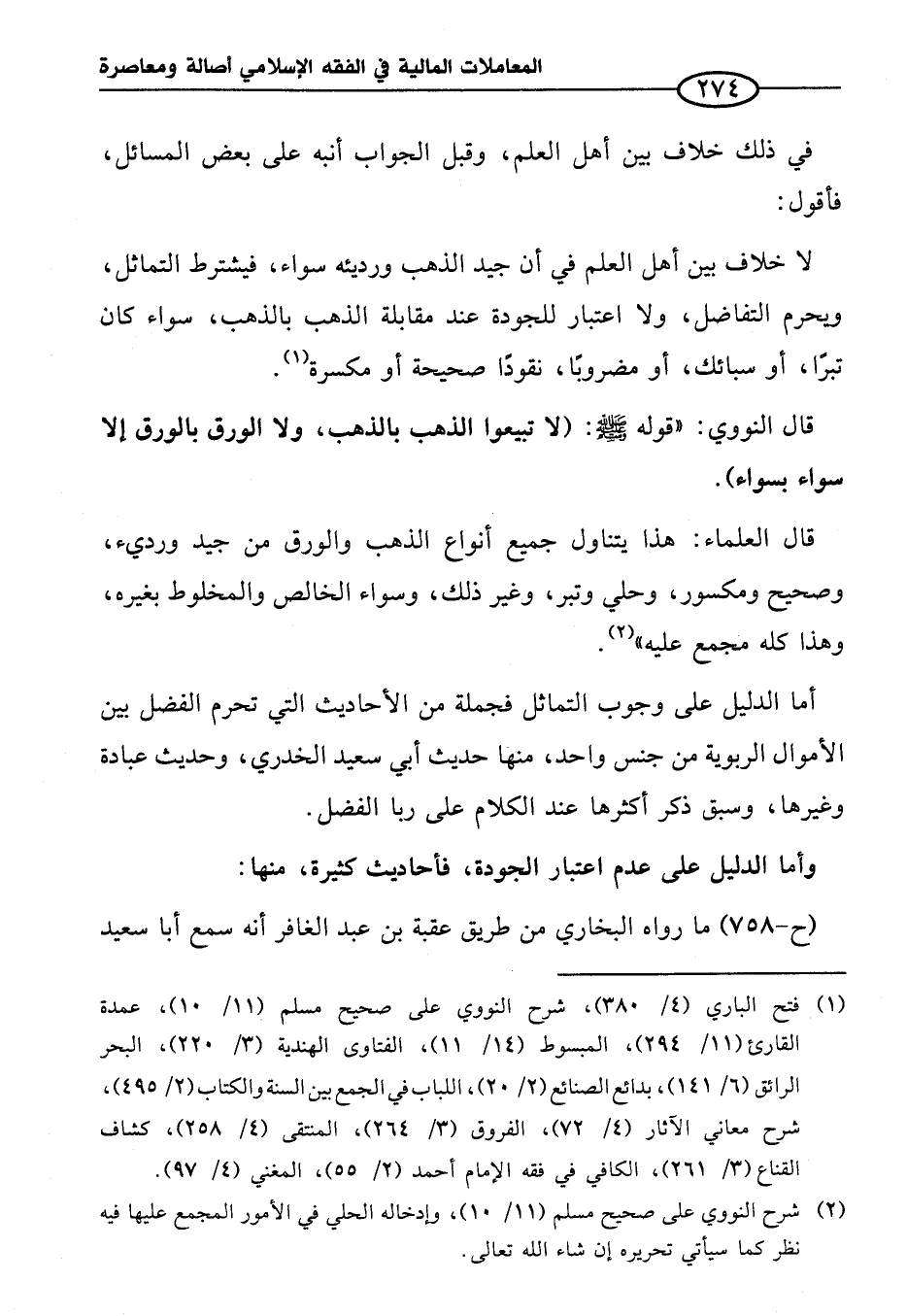 قال النووي: "قوله - صلى الله عليه وسلم -: (لا تبيعوا الذهب بالذهب، ولا الورق بالورق إلا سواء بسواء).