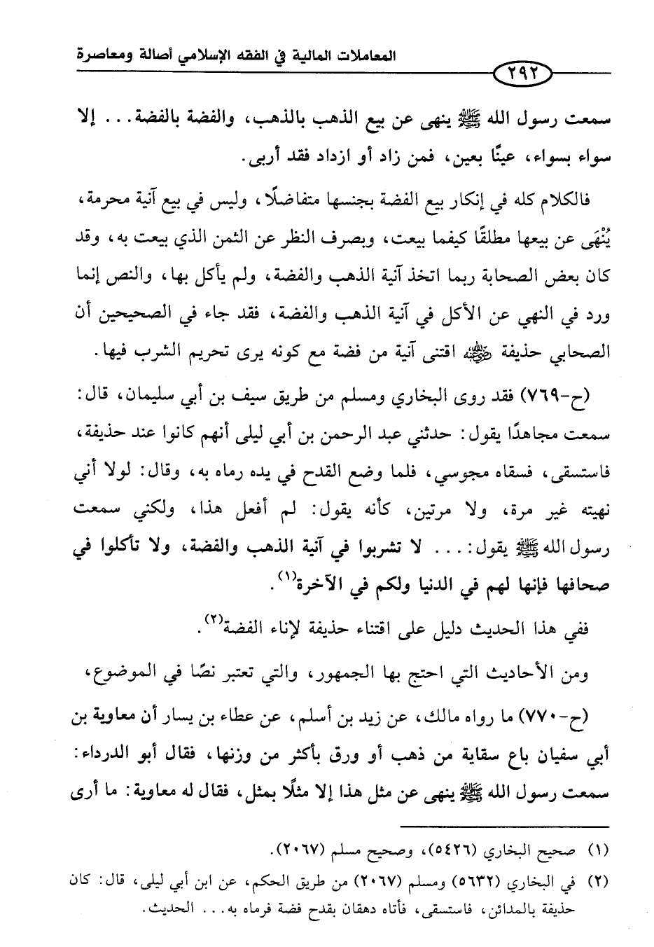 (ح-٧٧٠) ما رواه مالك، عن زيد بن أسلم، عن عطاء بن يسار أن معاوية بن أبي سفيان باع سقاية من ذهب أو ورق بأكثر من وزنها، فقال أبو الدرداء: سمعت رسول الله صلى الله عليه وسلم ينهى عن مثل هذا إلا مثلاً بمثل، فقال له معاوية: ما أرى