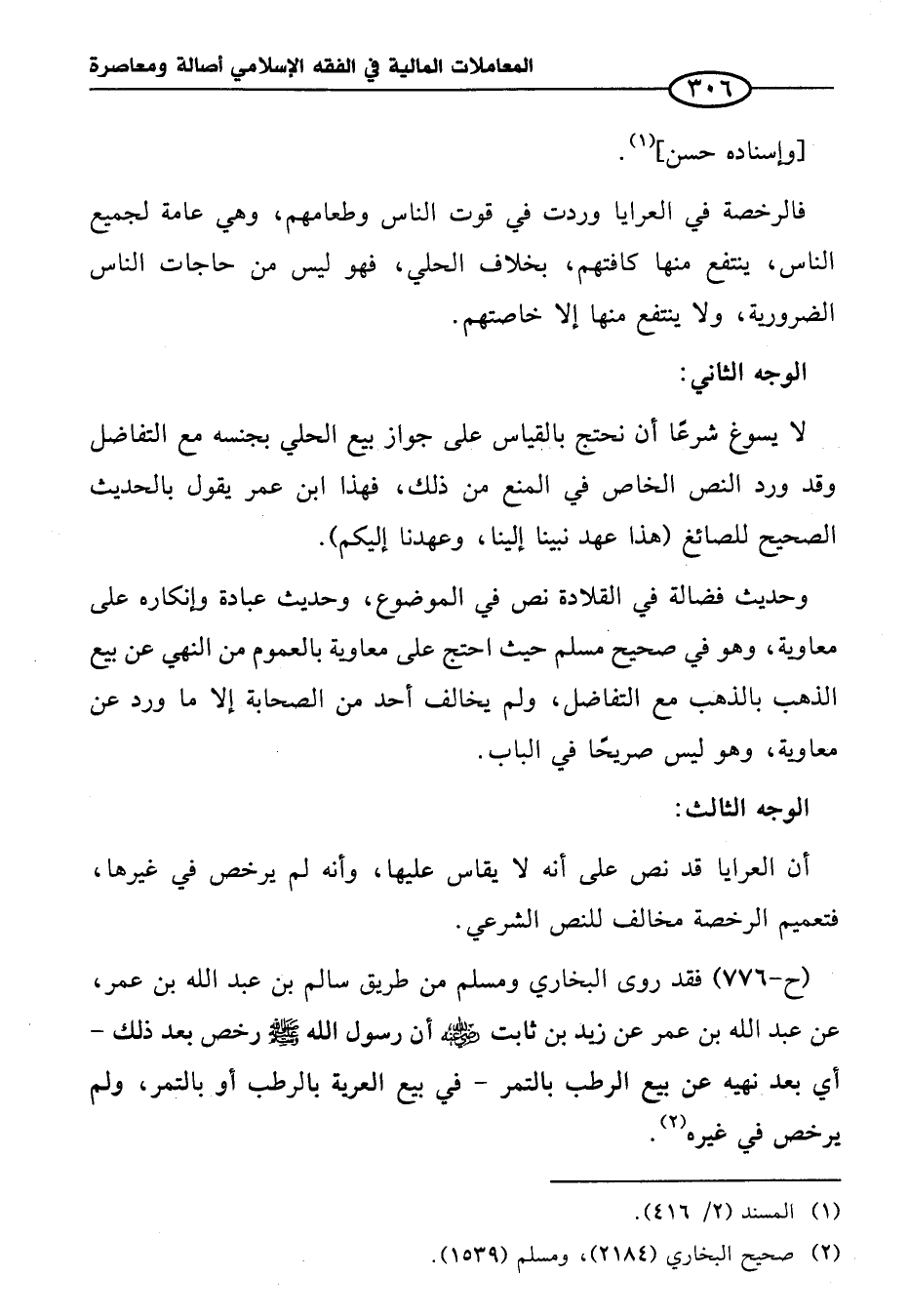 (ح-٧٧٦) فقد روى البخاري ومسلم من طريق سالم بن عبد الله بن عمر، عن عبد الله بن عمر عن زيد بن ثابت رضى الله عنه أن رسول الله صلى الله عليه وسلم رخص بعد ذلك -أي بعد نهيه عن بيع الرطب بالتمر- في بيع العرية بالرطب أو بالتمر، ولم يرخص في غيره (¬٢).