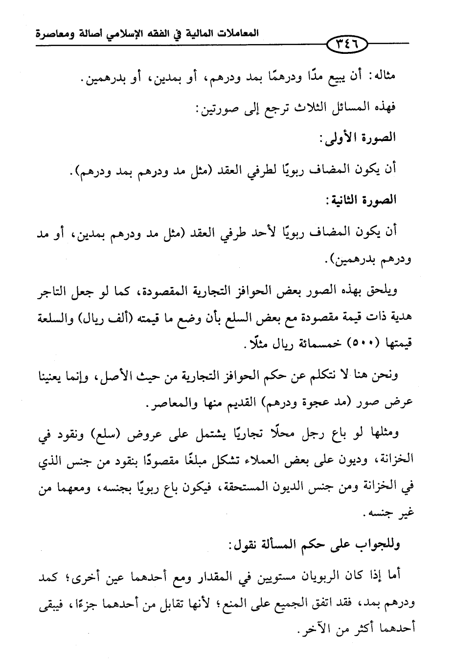 أن يكون المضاف ربوياً لأحد طرفي العقد (مثل مد ودرهم بمدين، أو مد ودرهم بدرهمين).