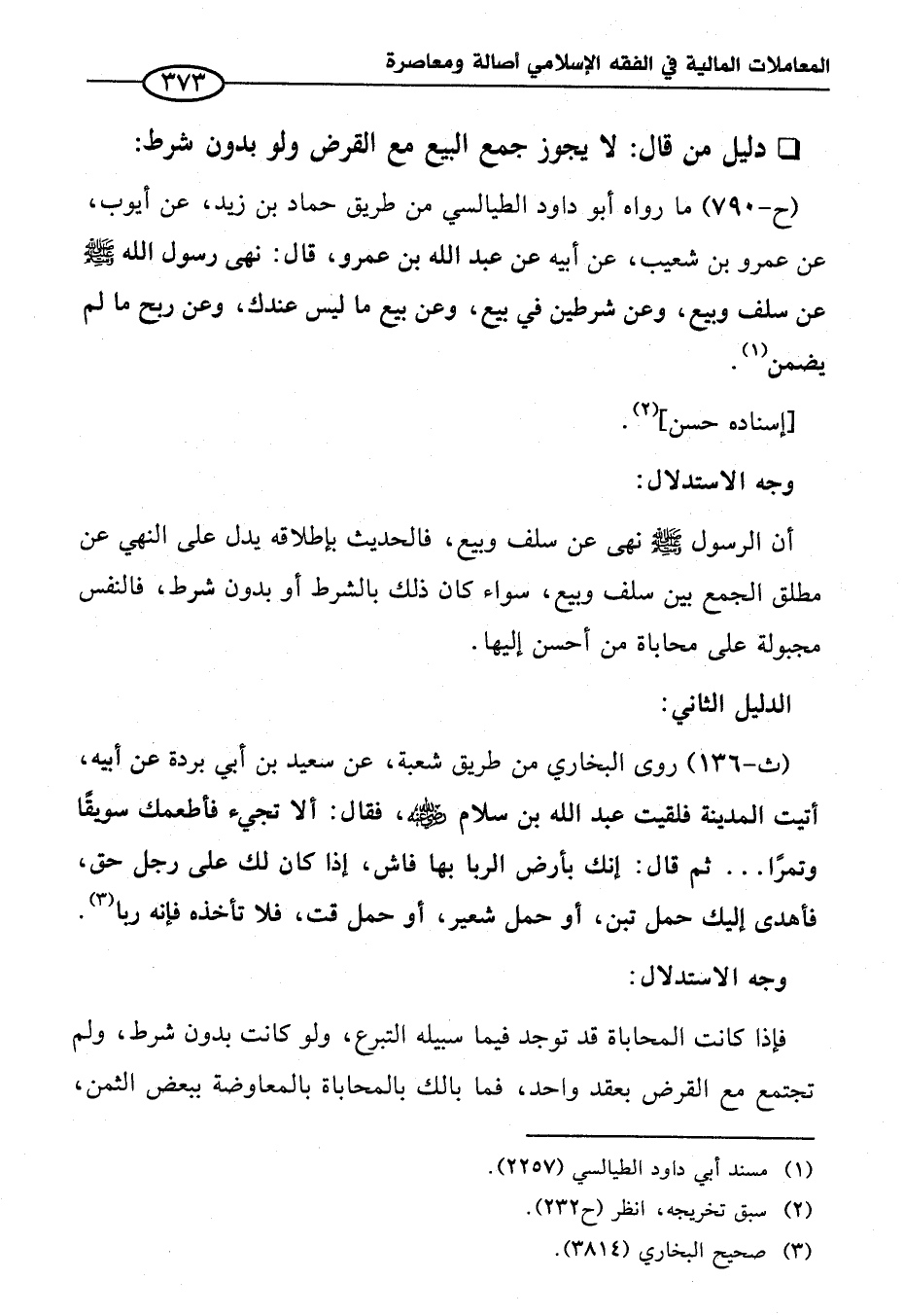 (ح-٧٩٠) ما رواه أبو داود الطيالسي من طريق حماد بن زيد، عن أيوب، عن عمرو بن شعيب، عن أبيه عن عبد الله بن عمرو، قال: نهى رسول الله صلى الله عليه وسلم عن سلف وبيع، وعن شرطين في بيع، وعن بيع ما ليس عندك، وعن ربح ما لم يضمن (¬١).