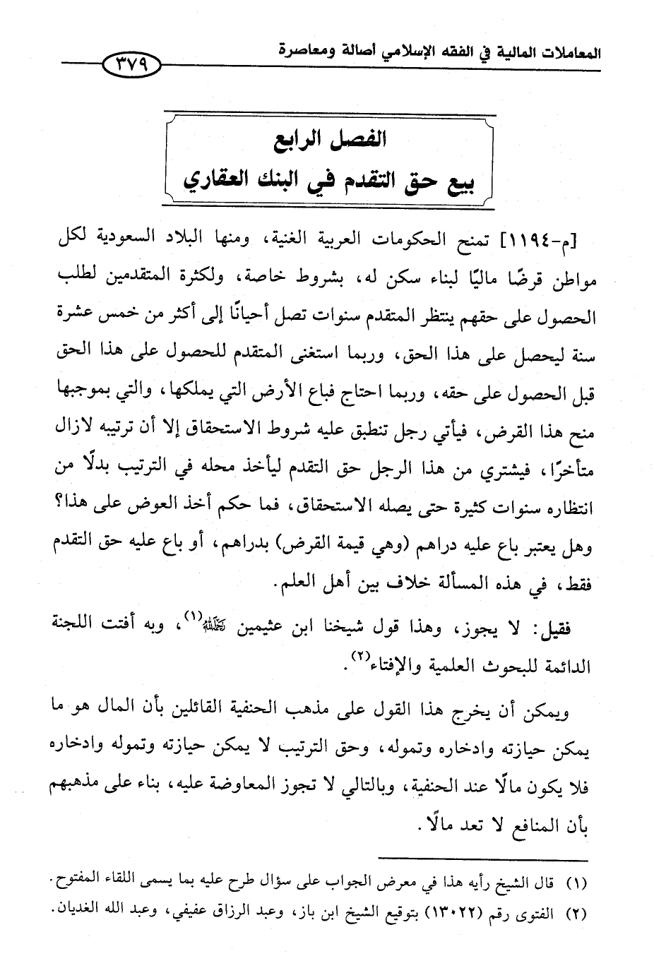 الفصل الرابع (*) بيع حق التقدم في البنك العقاري