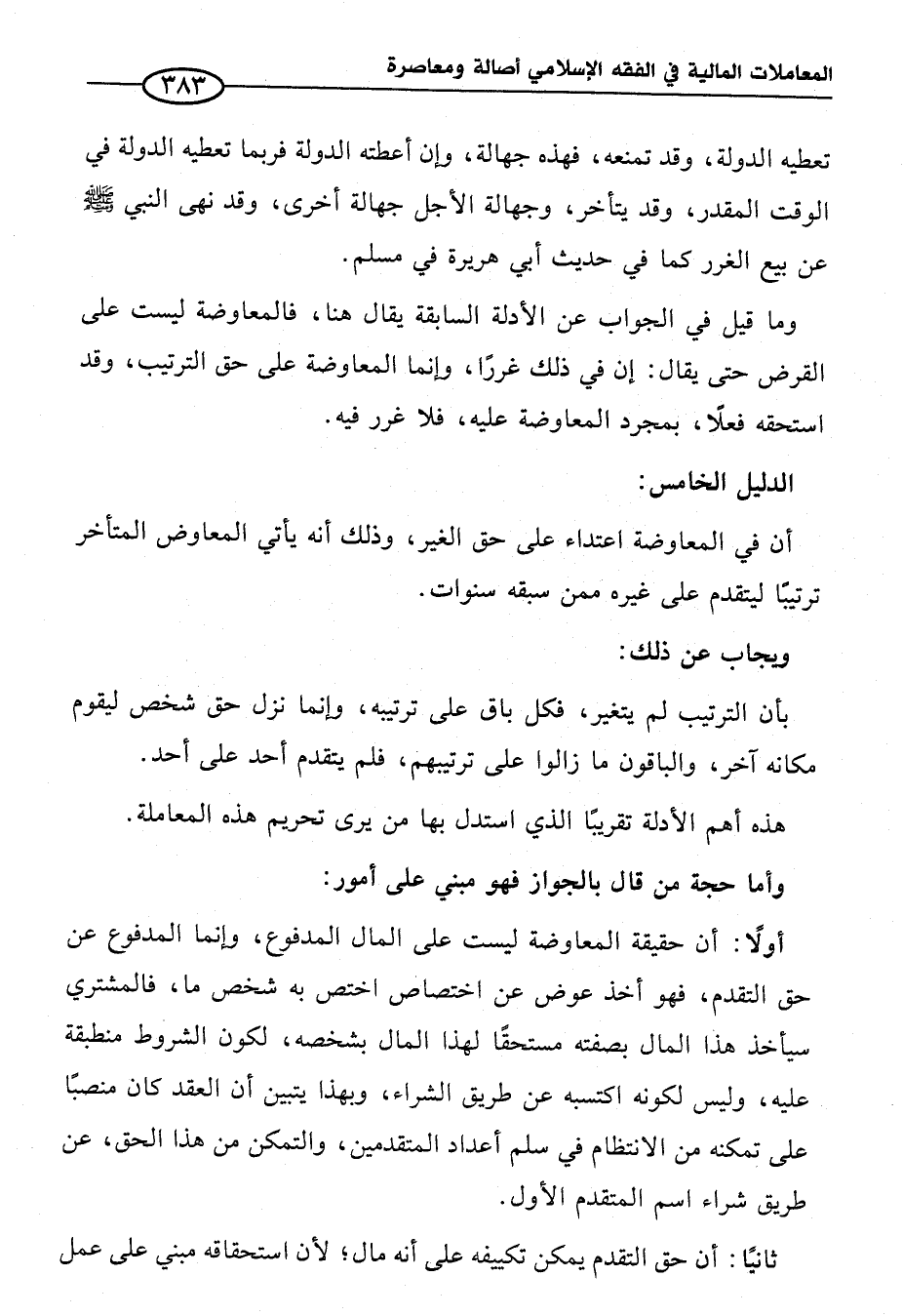 هذه أهم الأدلة تقريباً الذي استدل بها من يرى تحريم هذه المعاملة.