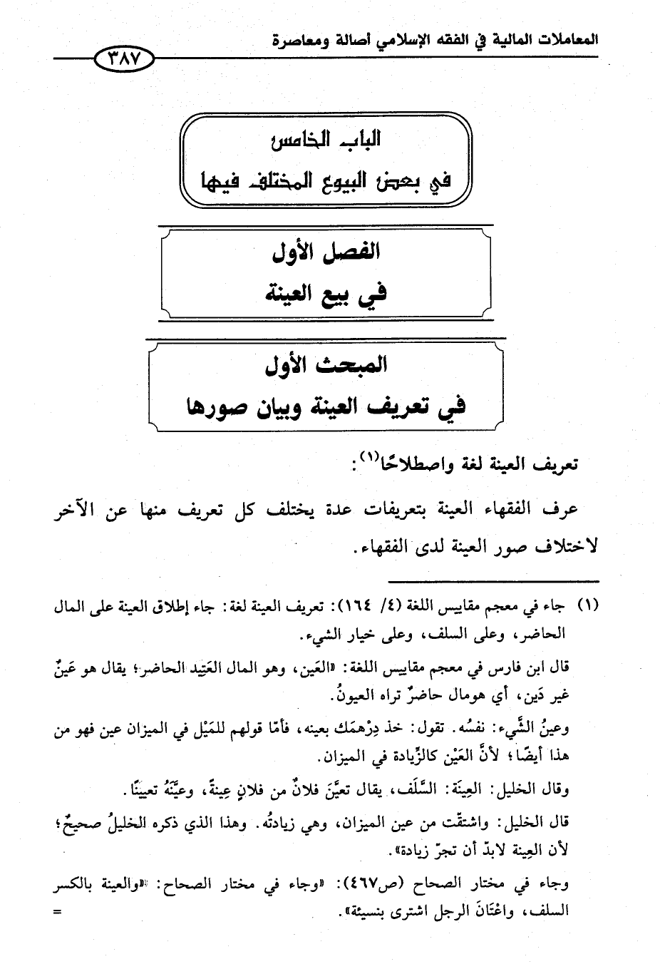 وجاء في مختار الصحاح (ص ٤٦٧): "وجاء في مختار الصحاح: "والعينة بالكسر السلف، واعْتَانَ الرجل اشترى بنسيئة".=