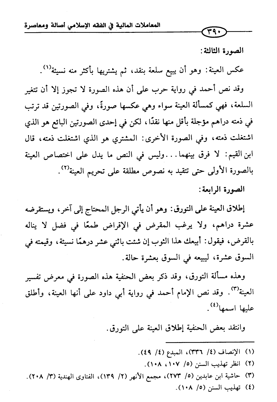 وهذه مسألة التورق، وقد ذكر بعض الحنفية هذه الصورة في معرض تفسير العينة (¬٣). وقد نص الإمام أحمد في رواية أبي داود على أنها العينة، وأطلق عليها اسمها (¬٤).