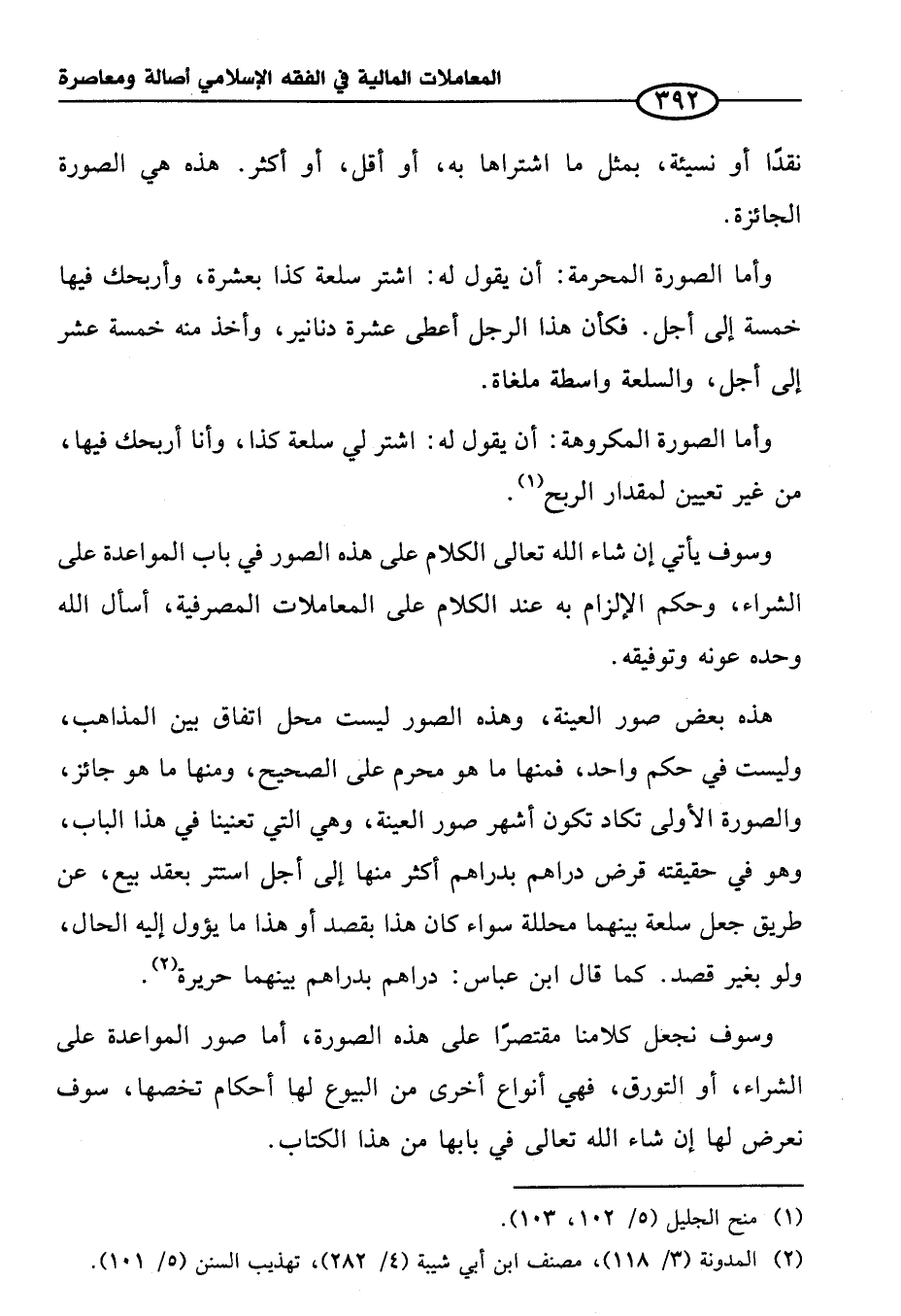 وسوف نجعل كلامنا مقتصراً على هذه الصورة، أما صور المواعدة على الشراء، أو التورق، فهي أنواع أخرى من البيوع لها أحكام تخصها، سوف نعرض لها إن شاء الله تعالى في بابها من هذا الكتاب.