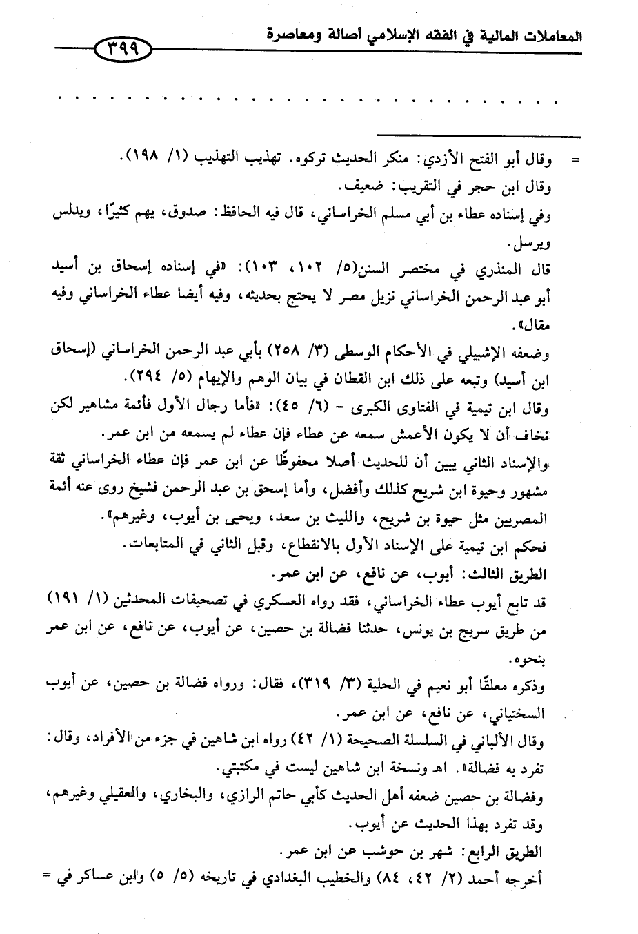 والإسناد الثاني يبين أن للحديث أصلاً محفوظاً عن ابن عمر فإن عطاء الخراساني ثقة مشهور وحيوة ابن شريح كذلك وأفضل، وأما إسحاق بن عبد الرحمن فشيخ روى عنه أئمة المصريين مثل حيوة بن شريح، والليث بن سعد، ويحيى بن أيوب، وغيرهم".
