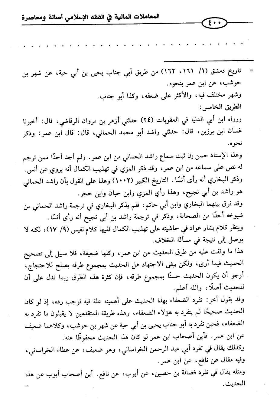 وقد يقول آخر: تفرد الضعفاء بهذا الحديث على أهميته علة فيه توجب رده، إذ لو كان الحديث صحيحاً لم يتفرد به هؤلاء الضعفاء وهذه طريقة المتقدمين لا يقبلون ما تفرد به الضعفاء، فحين تفرد به أبو جناب يحيى بن أبي حية عن شهر بن حوشب، وكلاهما ضعيف عن ابن عمر. فأين أصحاب ابن عمر لو كان هذا الحديث محفوظاً عنه.