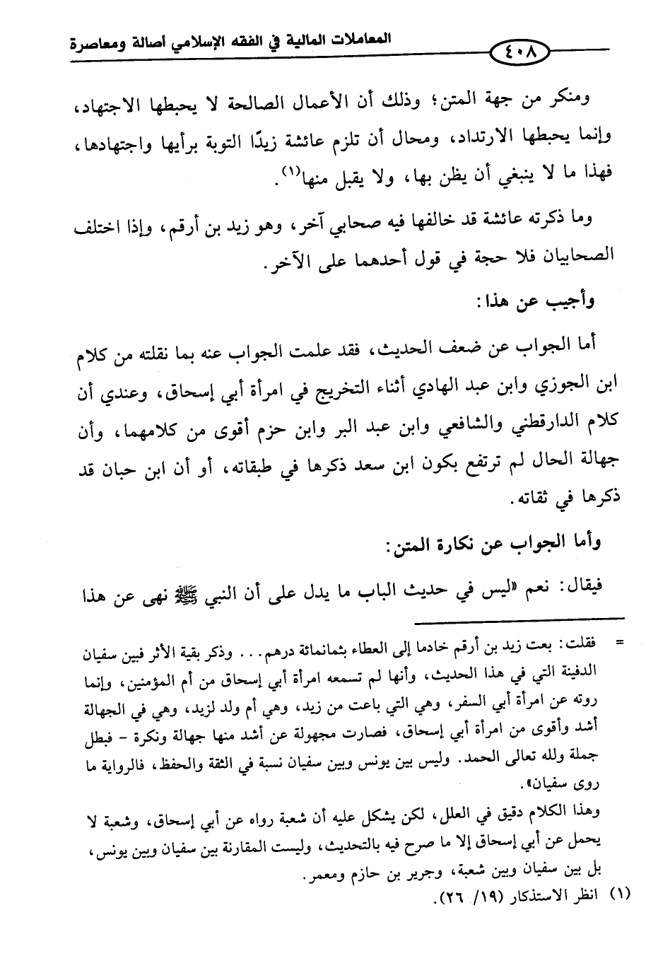 =فقلت: بعت زيد بن أرقم خادما إلى العطاء بثمانمائة درهم ... وذكر بقية الأثر فبين سفيان الدفينة التي في هذا الحديث، وأنها لم تسمعه امرأة أبي إسحاق من أم المؤمنين، وإنما روته عن امرأة أبي السفر، وهي التي باعت من زيد، وهي أم ولد لزيد، وهي في الجهالة أشد وأقوى من امرأة أبي إسحاق، فصارت مجهولة عن أشد منها جهالة ونكرة -فبطل جملة ولله تعالى الحمد. وليس بين يونس وبين سفيان نسبة في الثقة والحفظ، فالرواية ما روى سفيان".
