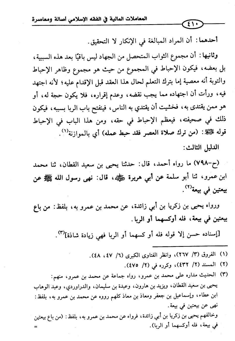 (ح- ٧٩٨) ما رواه أحمد، قال: حدثنا يحيى بن سعيد القطان، ثنا محمد ابن عمرو، ثنا أبو سلمة عن أبي هريرة صلى الله عليه وسلم، قال: نهى رسول الله صلى الله عليه وسلم عن بيعتين في بيعة (¬٢).