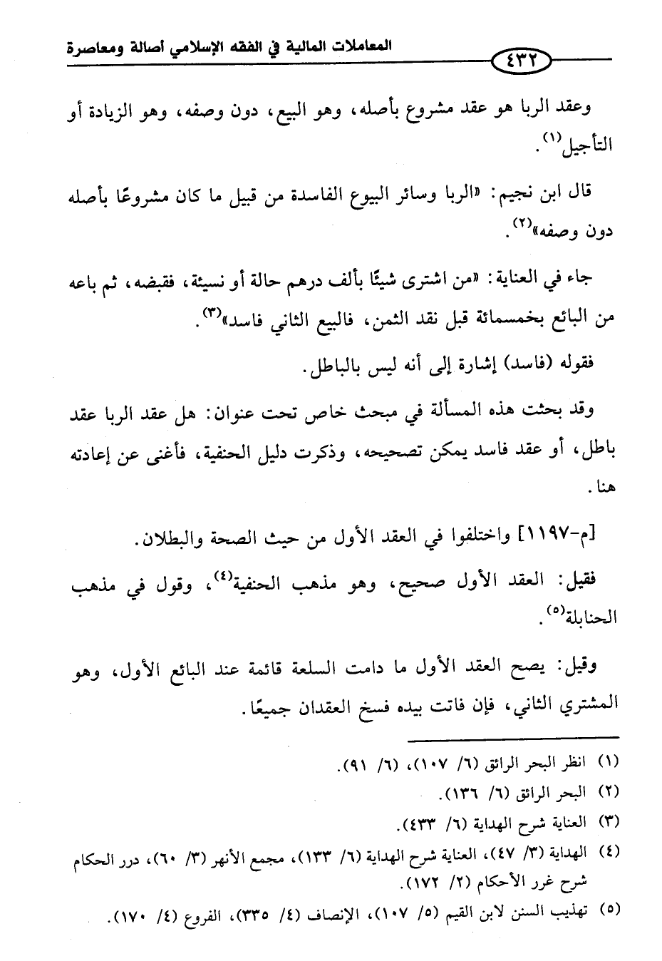 وقد بحثت هذه المسألة في مبحث خاص تحت عنوان: هل عقد الربا عقد باطل، أو عقد فاسد يمكن تصحيحه، وذكرت دليل الحنفية، فأغنى عن إعادته هنا.
