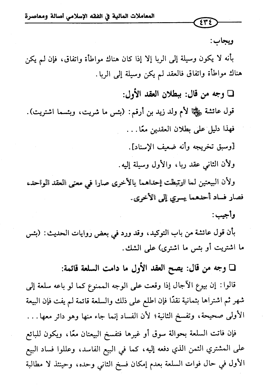 بأنه لا يكون وسيلة إلى الربا إلا إذا كان هناك مواطأة واتفاق، فإن لم يكن هناك مواطأة واتفاق فالعقد لم يكن وسيلة إلى الربا.