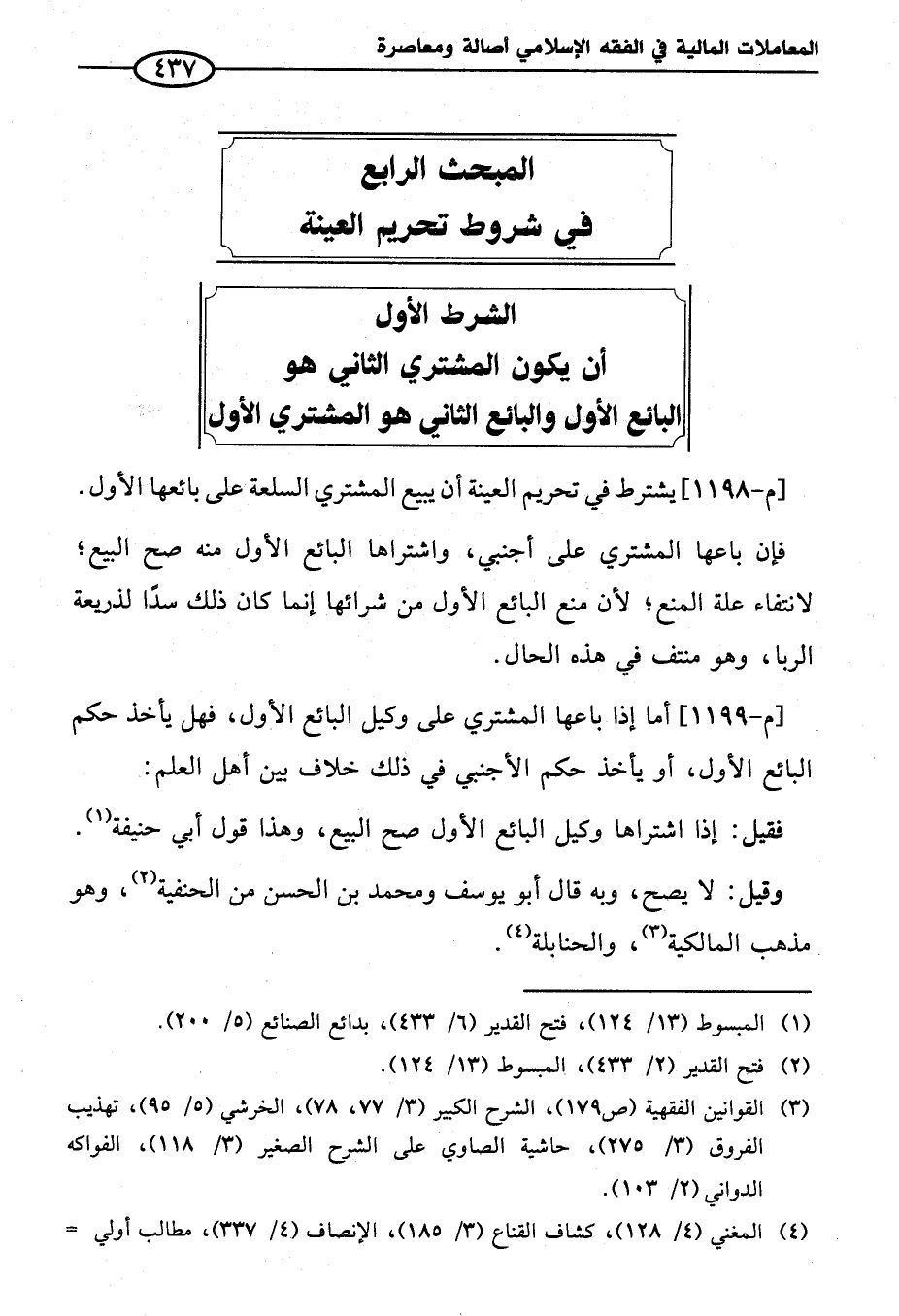 الشرط الأول أن يكون المشتري الثاني هو البائع الأول والبائع الثاني هو المشتري الأول
