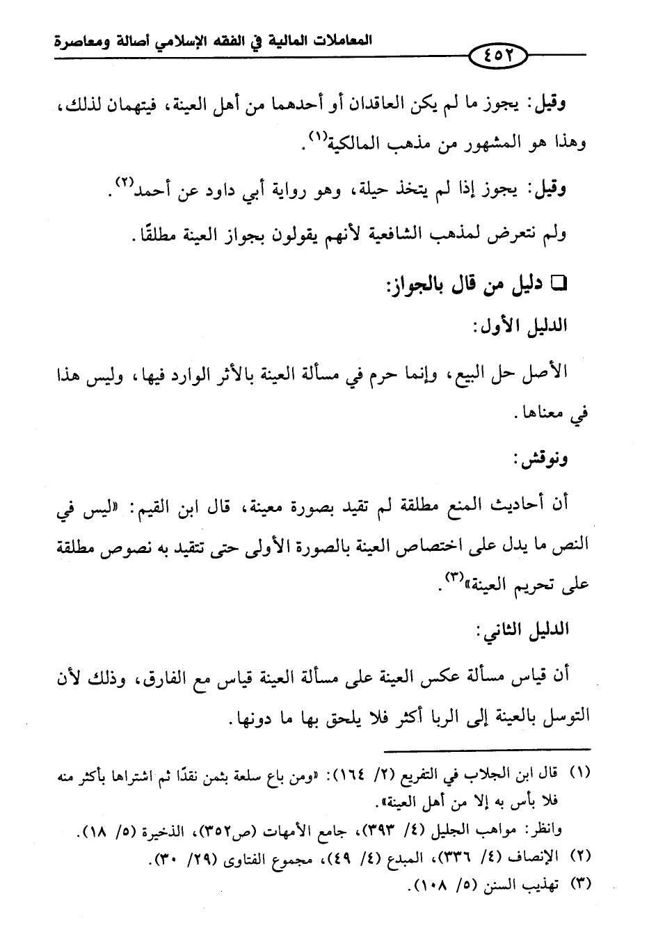 وقيل: يجوز ما لم يكن العاقدان أو أحدهما من أهل العينة، فيتهمان لذلك، وهذا هو المشهور من مذهب المالكية (¬١).