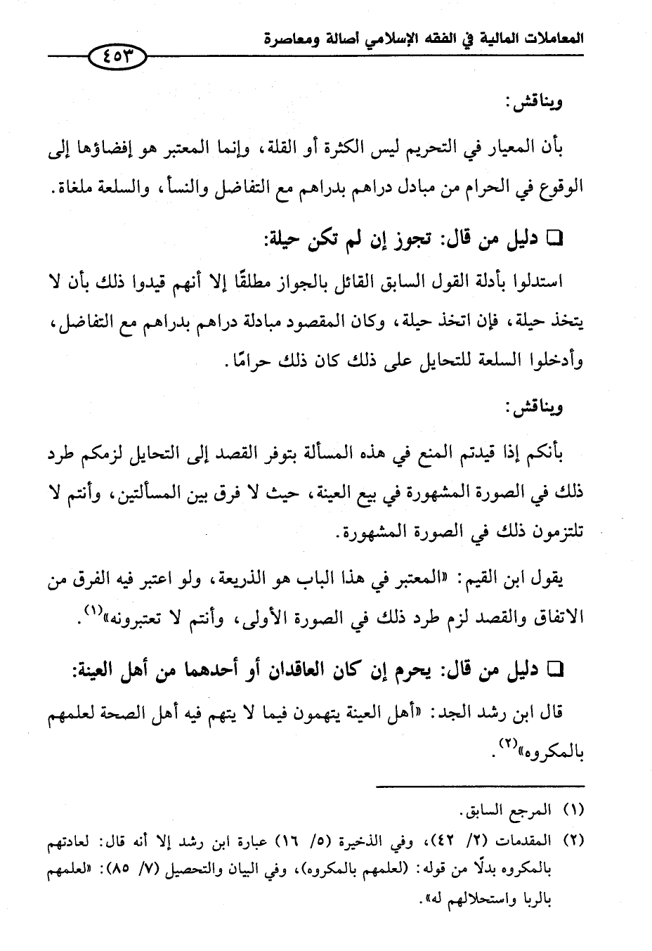 (¬٢) المقدمات (٢/ ٤٢)، وفي الذخيرة (٥/ ١٦) عبارة ابن رشد إلا أنه قال: لعادتهم بالمكروه بدلاً من قوله: (لعلمهم بالمكروه)، وفي اليان والتحصيل (٧/ ٨٥): "لعلمهم بالربا واستحلالهم له".
