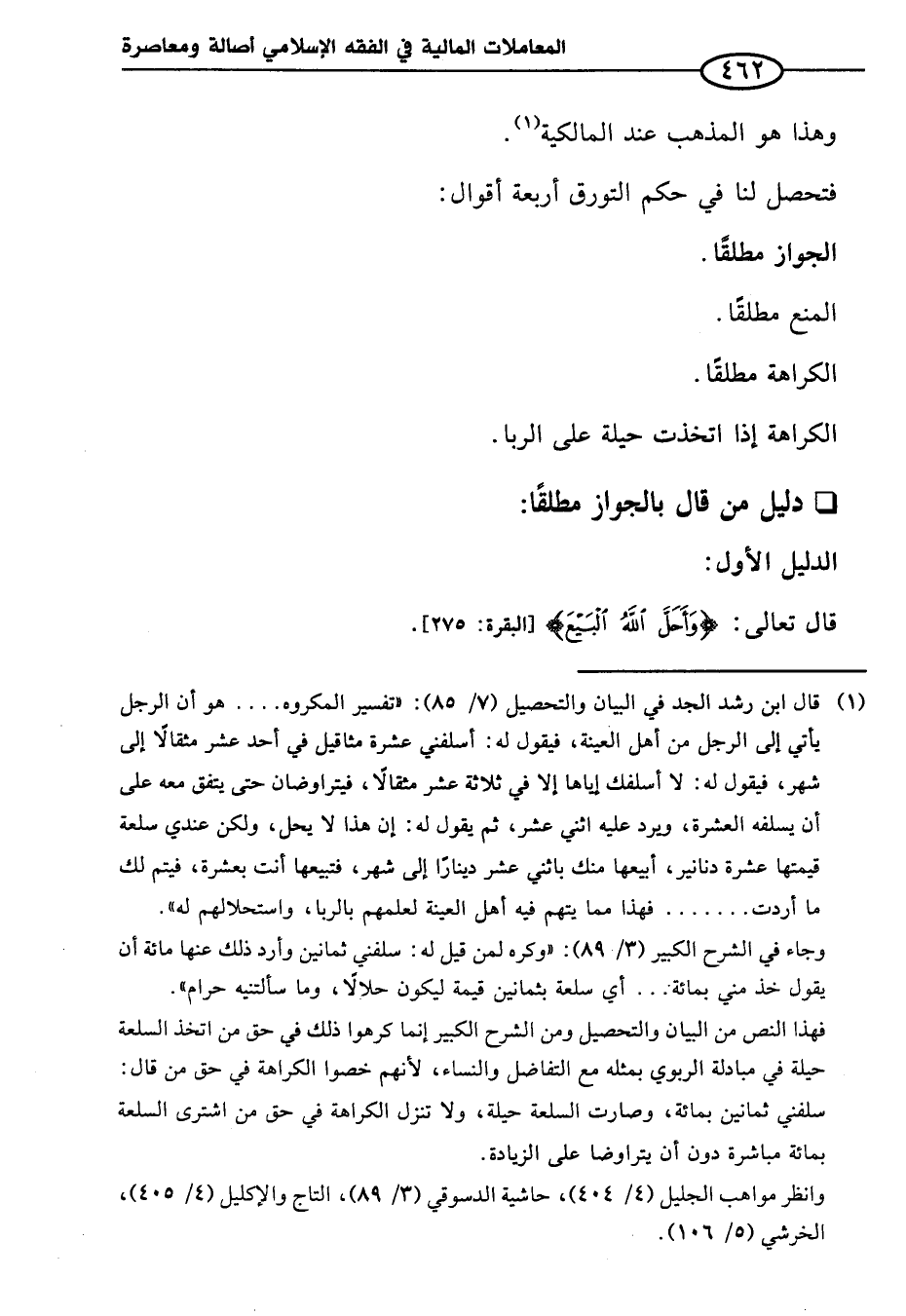 فتحصل لنا في حكم التورق أربعة أقوال: