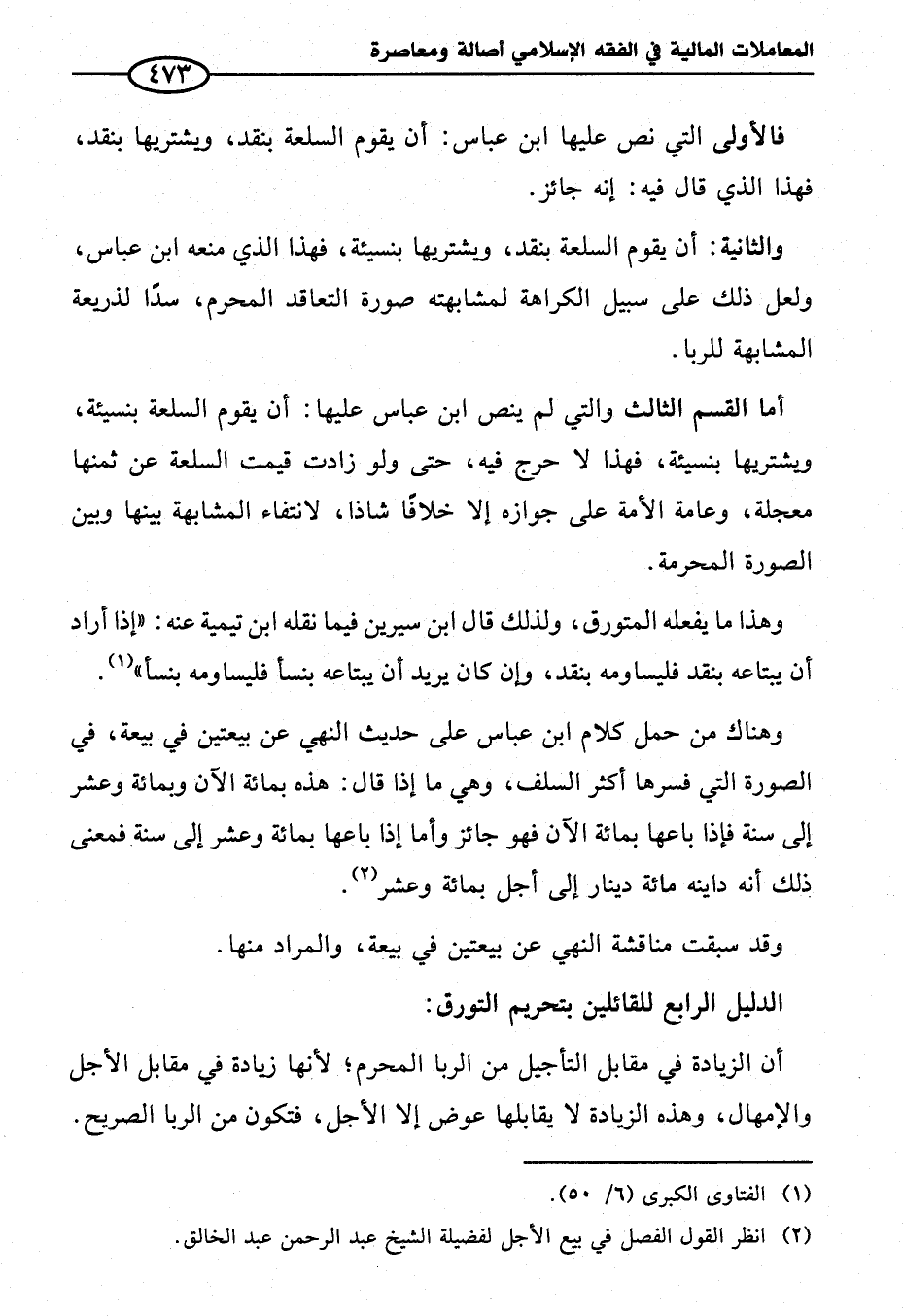 (¬٢) انظر القول الفصل في بيع الأجل لفضيلة الشيخ عبد الرحمن عبد الخالق.