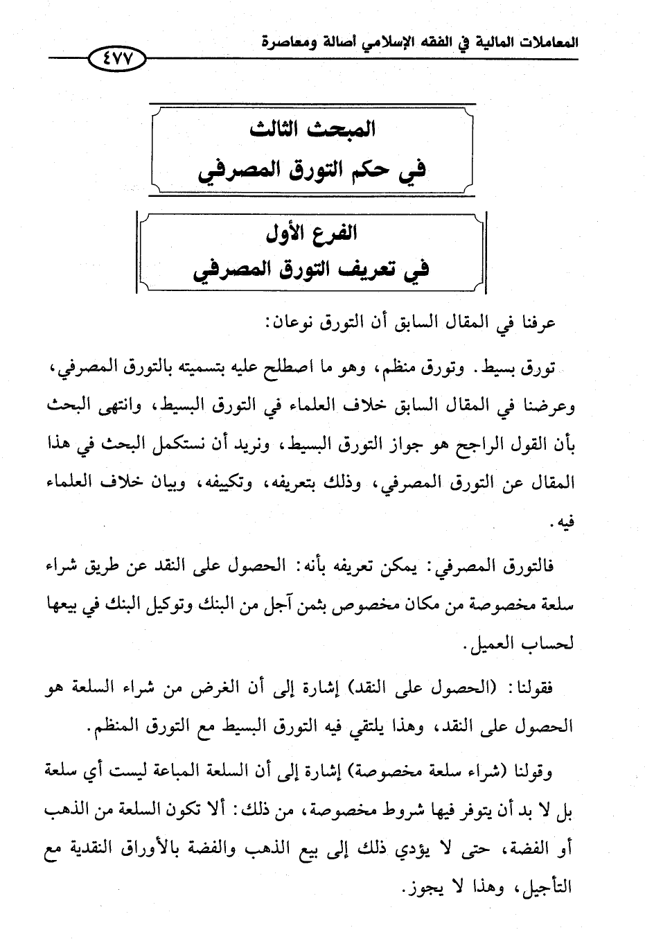 تورق بسيط. وتورق منظم، وهو ما اصطلح عليه بتسميته بالتورق المصرفي، وعرضنا في المقال السابق خلاف العلماء في التورق البسيط، وانتهى البحث بأن القول الراجح هو جواز التورق البسيط، ونريد أن نستكمل البحث في هذا المقال عن التورق المصرفي، وذلك بتعريفه، وتكييفه، وبيان خلاف العلماء فيه.