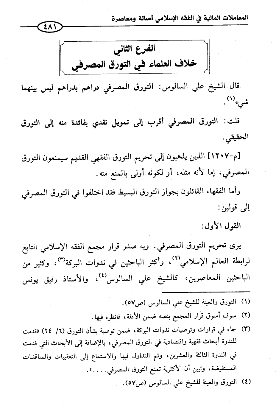 الفرع الثاني خلاف العلماء في التورق المصرفي