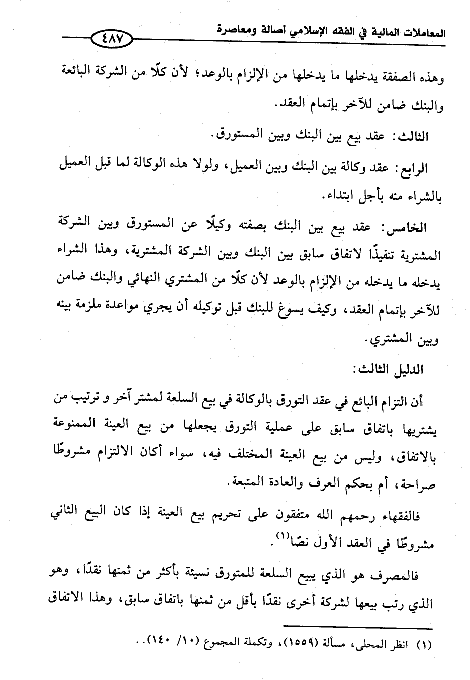 وهذه الصفقة يدخلها ما يدخلها من الإلزام بالوعد؛ لأن كلًّا من الشركة البائعة والبنك ضامن للآخر بإتمام العقد.