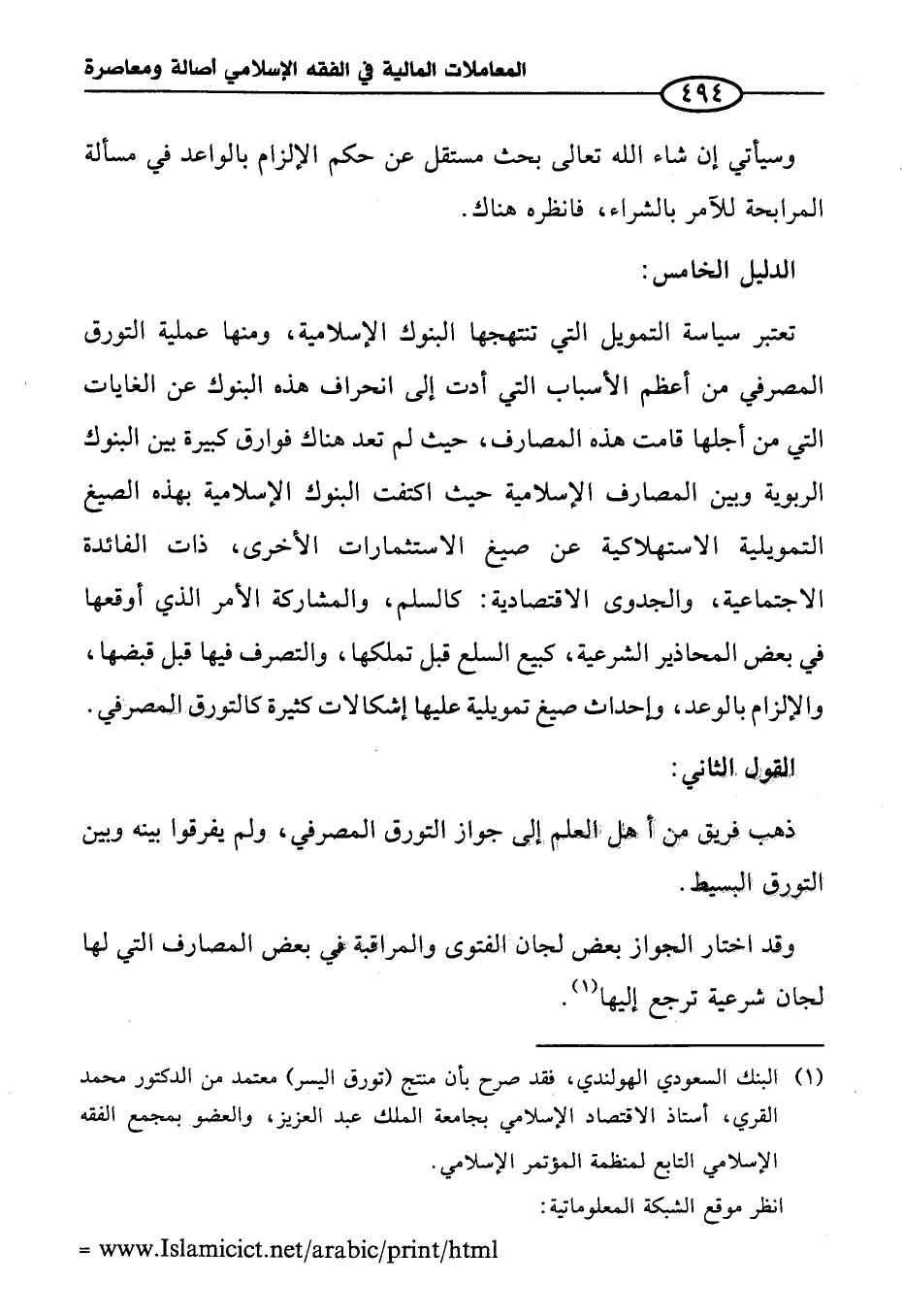 (¬١) البنك السعودي الهولندي، فقد صرح بأن منتج (تورق اليسر) معتمد من الدكتور محمَّد القري، أستاذ الاقتصاد الإِسلامي بجامعة الملك عبد العزيز، والعضو بمجمع الفقه الإِسلامي التابع لمنظمة المؤتمر الإِسلامي.