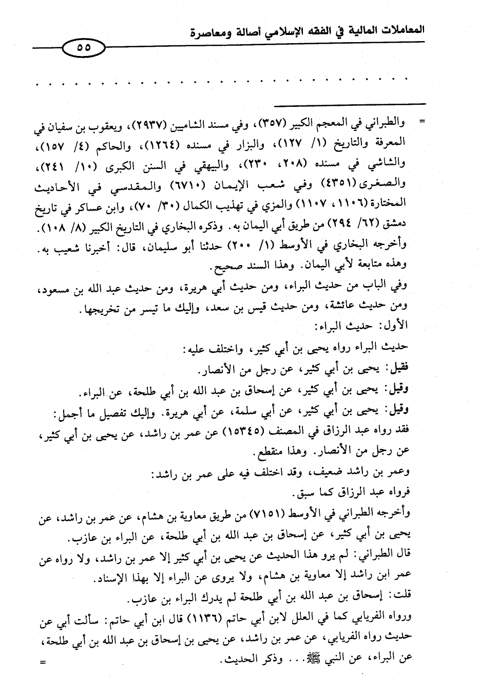 قال الطبراني: لم يرو هذا الحديث عن يحيى بن أبي كثير إلا عمر بن راشد، ولا رواه عن عمر ابن راشد إلا معاوية بن هشام، ولا يروى عن البراء إلا بهذا الإسناد.