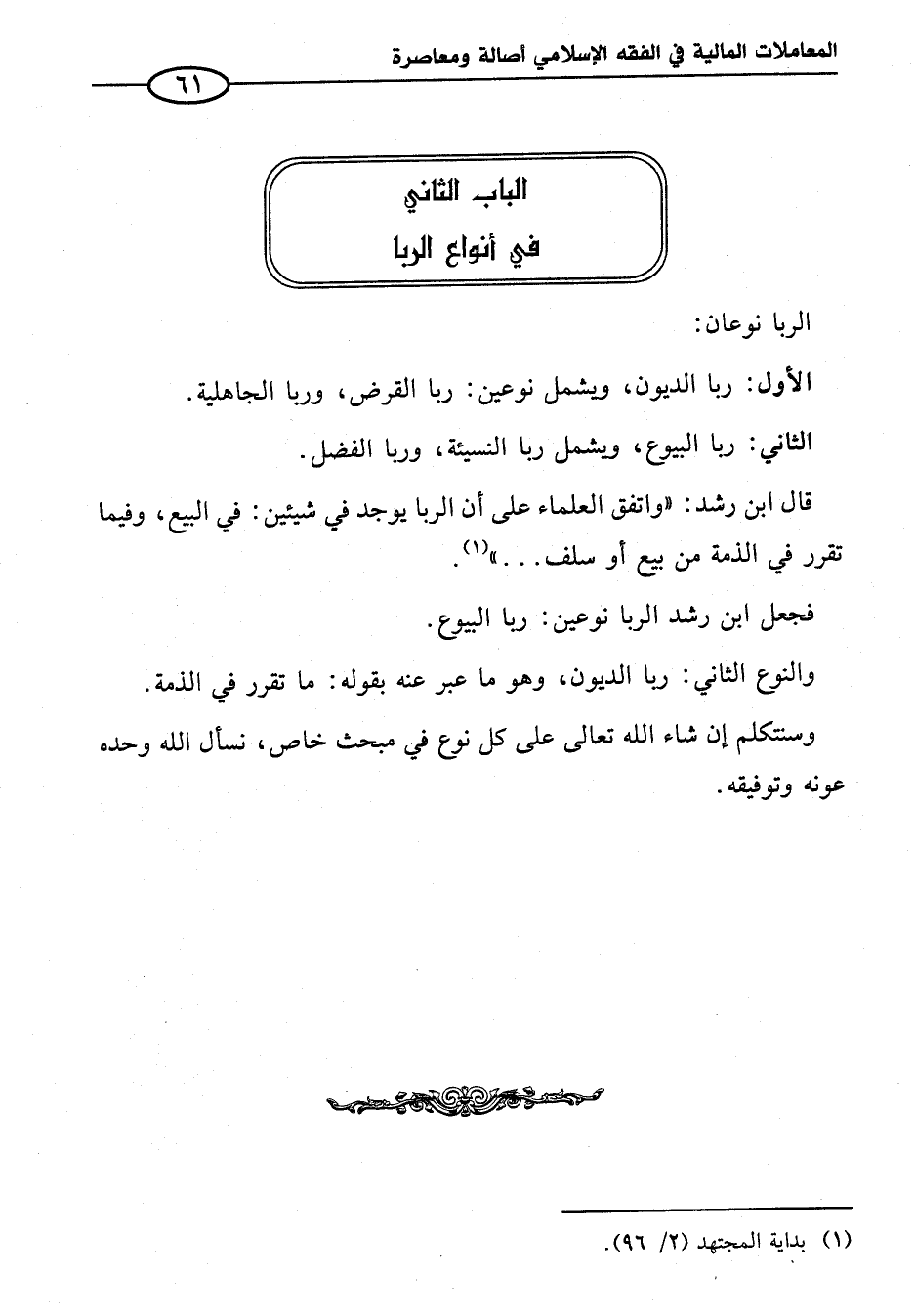 فجعل ابن رشد الربا نوعين: ربا البيوع.
